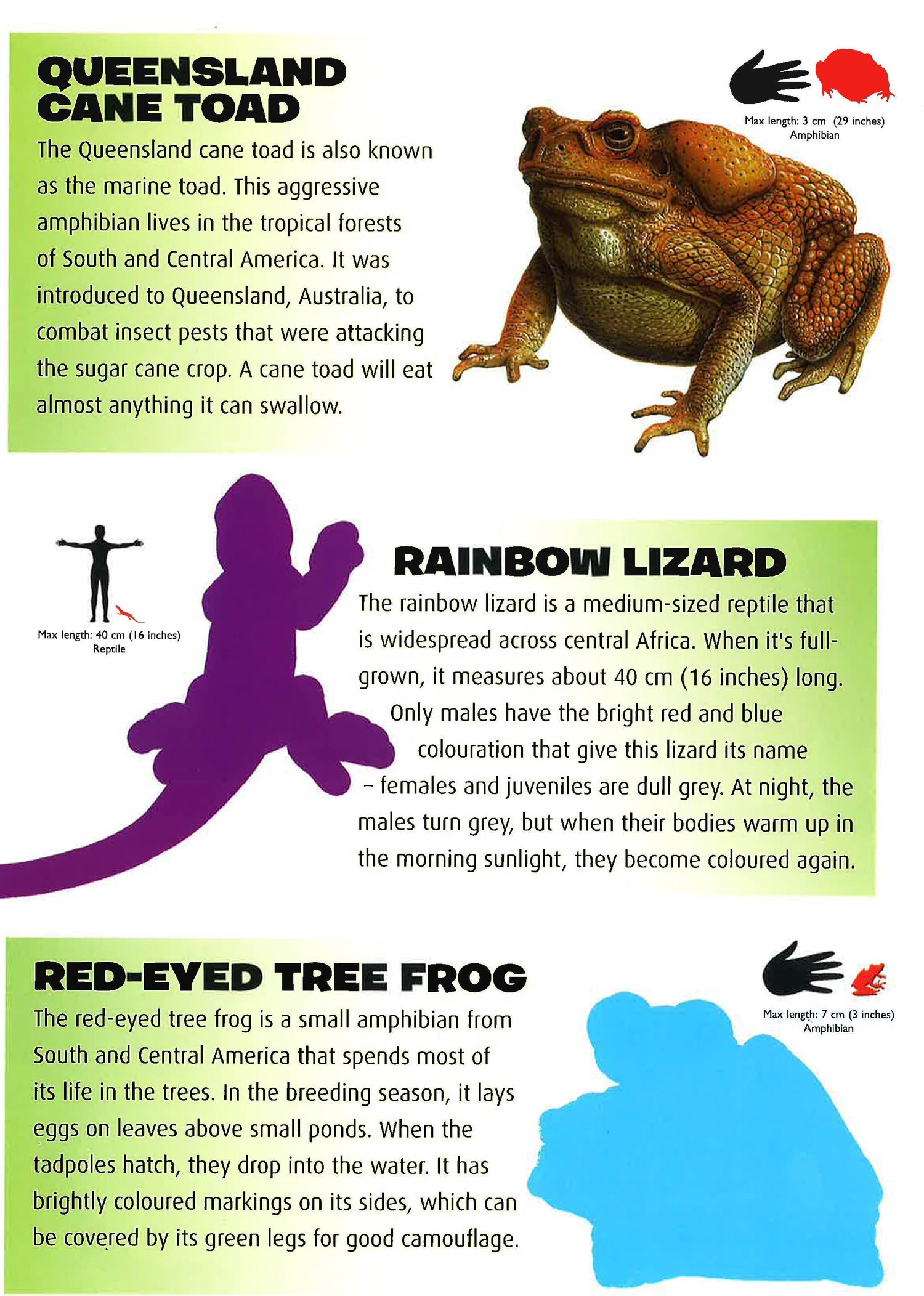 Learn about some of the world's most fascinating creatures in this introduction to reptiles and amphibians. Explore the incredible variety of crocodiles, turtles, lizards and many more. This book contains: - Profiles of more than 40 creatures from all over the world - Fascinating fact panels - 20 reuseable stickers