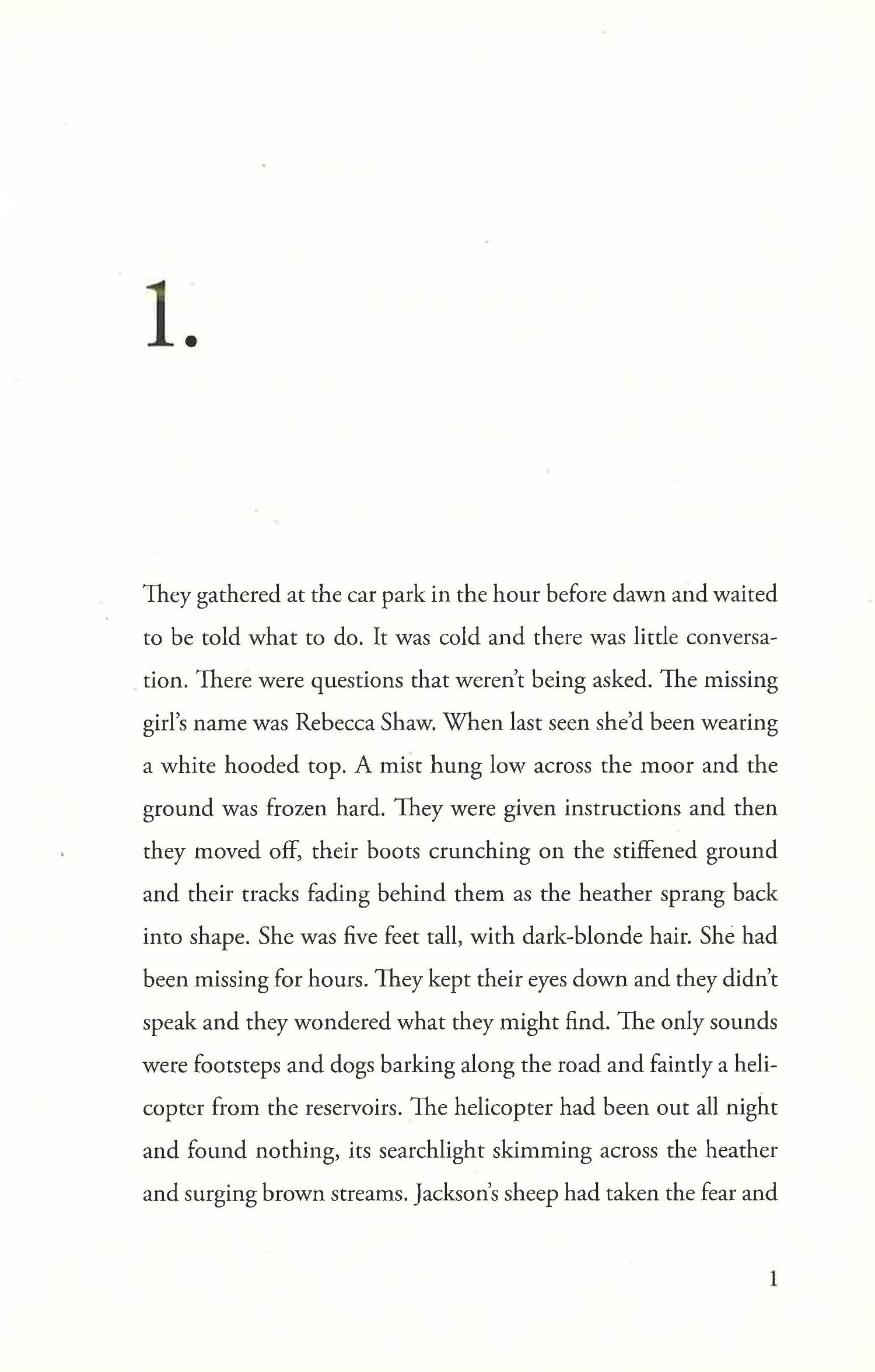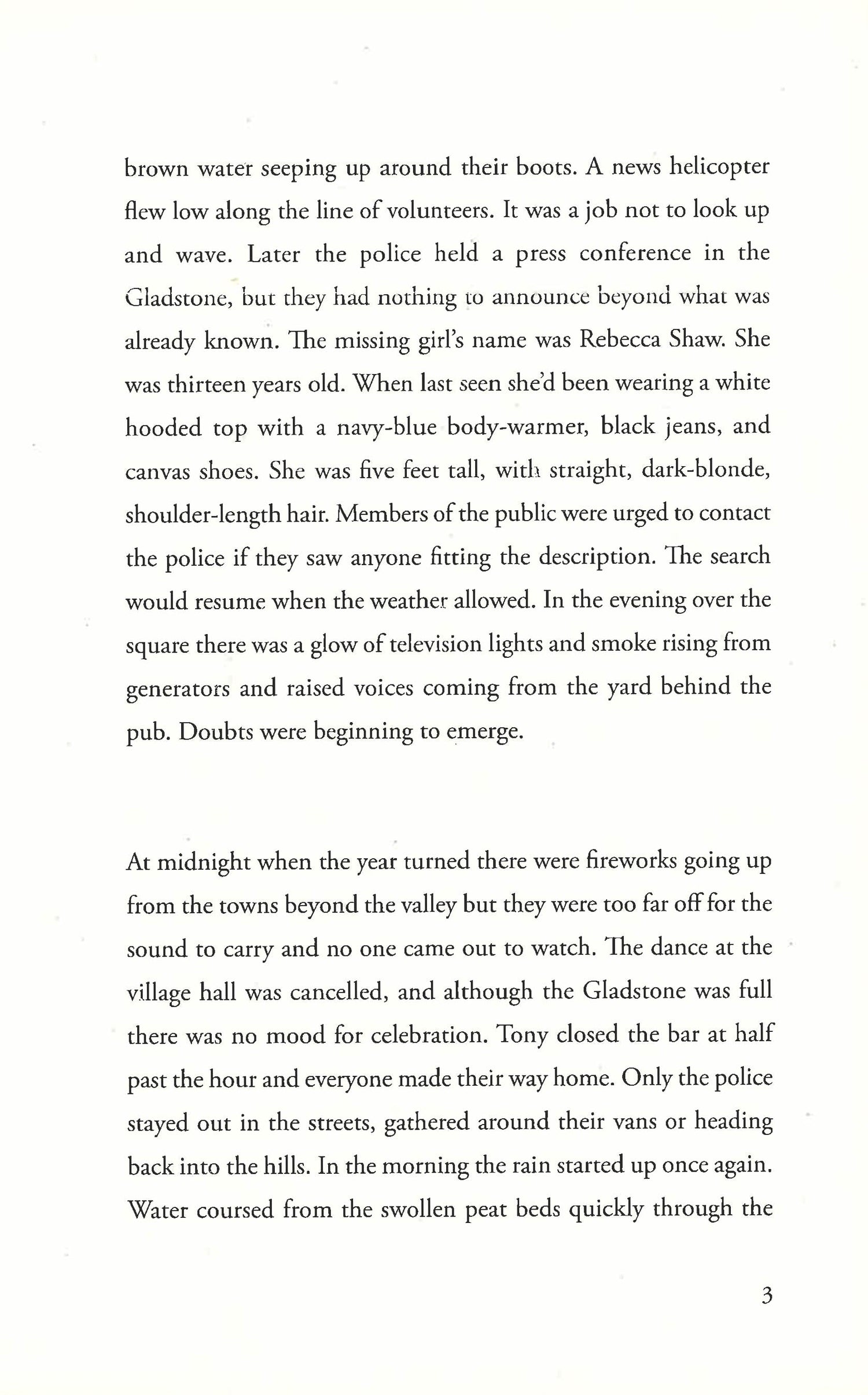 Midwinter in the early years of this century. A teenage girl on holiday has gone missing in the hills at the heart of England. The villagers are called up to join the search, fanning out across the moors as the police set up roadblocks and a crowd of news reporters descends on their usually quiet home.