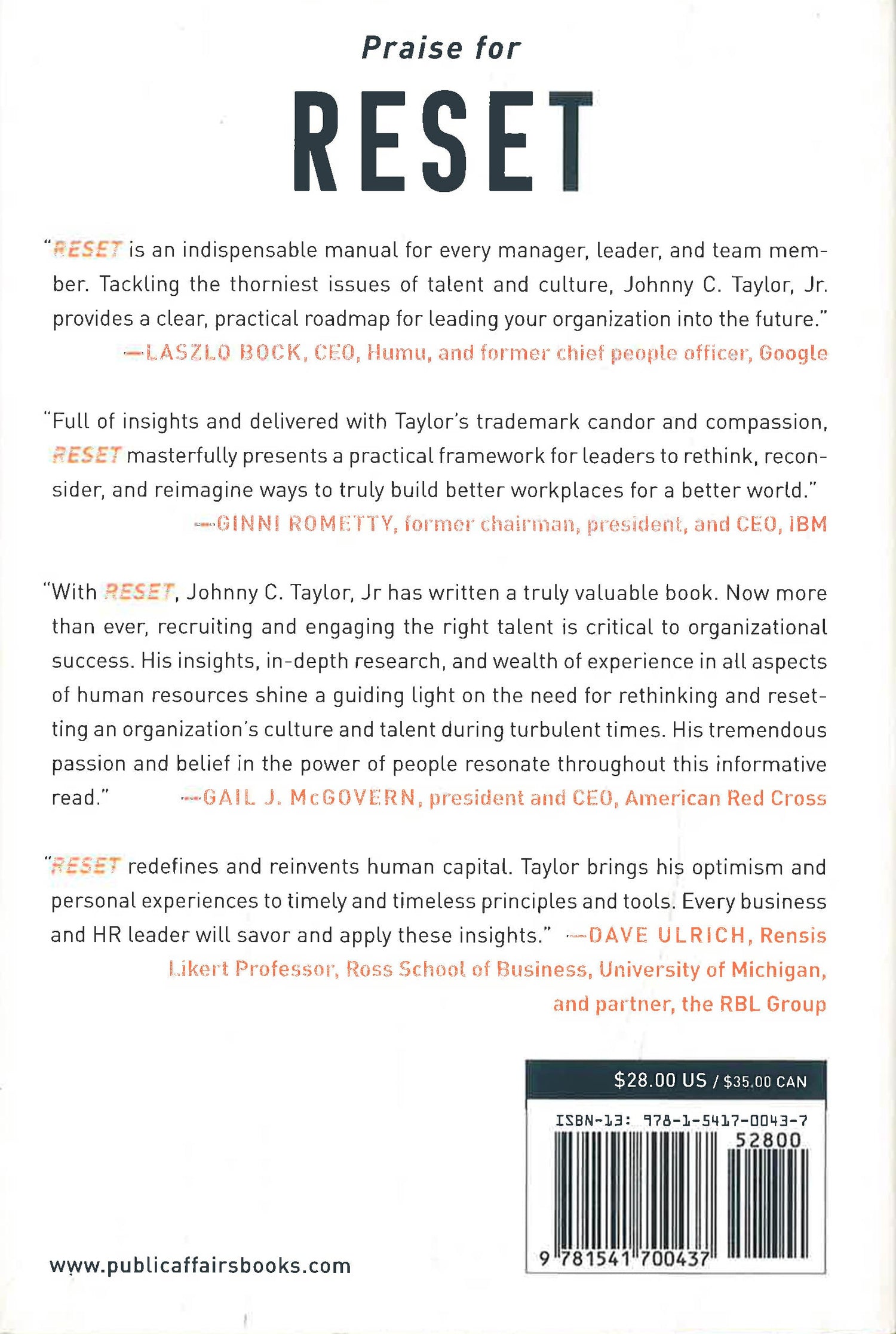Part call to action, part strategic roadmap, Reset challenges business leaders' underlying assumptions about workers and the workplace, delivers practical strategies for finding and keeping the talent needed to make businesses successful, and introduces dynamic tools to sustain that success over the long haul. Now is the time for leaders to completely reimagine, reorganize, and Reset their operations to create a more daring, resilient and sustainable future. This is the book that will guide them exactly when they most need it.