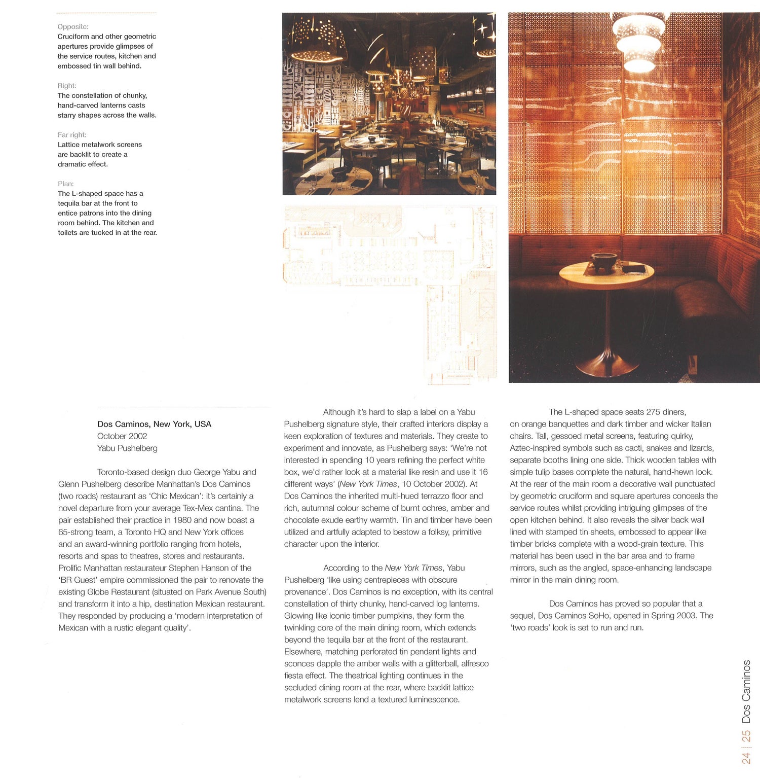 The restaurant boom of the last twenty years has led to an increase in both the volume and diversity of restaurants in the worldGCOs major cities. Consumer expectations have risen dramaticallyGCorestaurants have become so much more than simply places to eat.As living space in the city shrinks and city dwellers have less private room to call their own, they are increasingly choosing to dine out in public spaces. These arenas are where the modern urbanite GC[yen]performsGC[yen] his or her identityGCowhere we eat and drink defines, to an extent, our social selves. Modern technology and communications have made us more mobile than ever, leading to an unprecedented awareness of other cultures. This is reflected in the rich diversity of food and design on display in todayGCOs restaurants. In the twenty-first century, eating out is as much about entertainment as nourishment.Now restaurants can look like anything from a bedroom (such as SupperGCo club Roma) to the Arabian-style Nomads in Amsterdam or the futuristic Pod in Philadelphia. As long as thereGCOs somewhere to rest a plate, when it comes to inspiration, the world is the restaurant designerGCOs oyster.