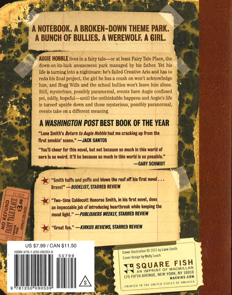 Augie Hobble lives in a fairy tale - or at least Fairy Tale Place, the down-on-its-luck amusement park managed by his father. Yet his life is turning into a nightmare: he's failed creative arts and has to take summer school, the girl he has a crush on won't acknowledge him, and Hogg Wills and the school bullies won't leave him alone. Worse, a succession of mysterious, possibly paranormal, events have him convinced that he's turning into a werewolf. At least Augie has his notebook and his best friend Britt to confide in - until the unthinkable happens and Augie's life is turned upside down, and those mysterious, possibly paranormal, events take on a different meaning. Return to Augie Hobble by Lane Smith is a charming tale about a boy stumbling through life and the supernatural. Hilarious, tender, wise, the book is packed with haunting illustrations throughout that all make for one, unforgettable middle-grade adventure.