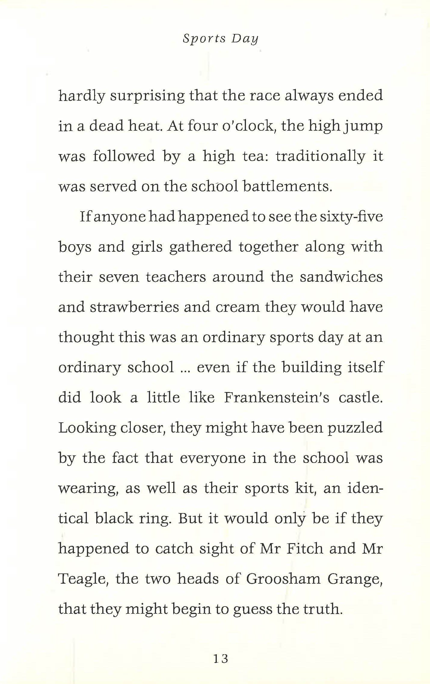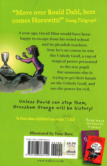 In the wickedly funny sequel to Groosham Grange by bestselling author Anthony Horowitz, someone is trying to destroy David Eliot's school. A year ago, he'd have been happy to see the end of Groosham Grange and its ghoulish teachers. Now, he's on course to win the Unholy Grail, a cup of magical power presented to the star pupil. But a series of suspicious mishaps sees the gap between David and new boy Vincent King narrow alarmingly. Someone, it seems, is trying to stop David winning - and, worse, threatening Groosham Grange itself!