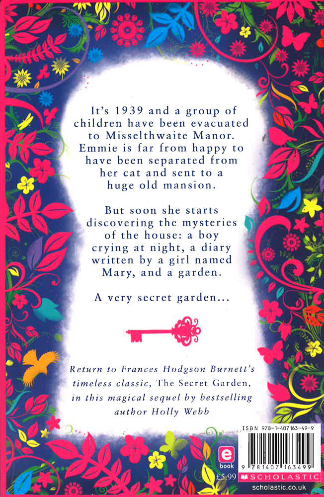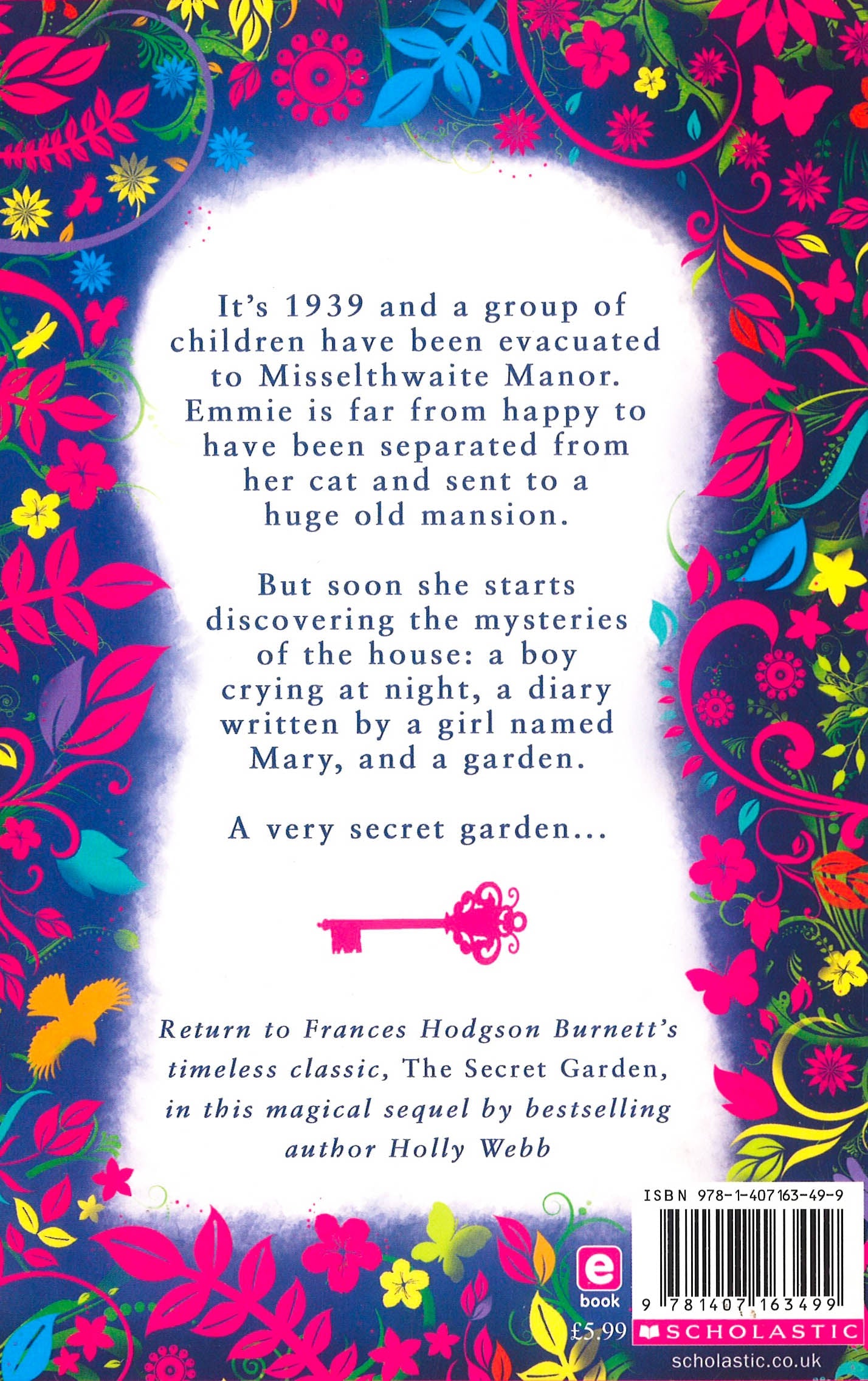 Return to Frances Hodgson Burnett's timeless classic, The Secret Garden, in this magical sequel by bestselling author Holly Webb. It's 1939 and a group of children have been evacuated to Misselthwaite Manor. Emmie is far from happy to have been separated from her cat and sent to a huge old mansion. But soon she starts discovering the secrets of the house - a boy crying at night, a diary written by a girl named Mary, and a garden. A very secret garden...