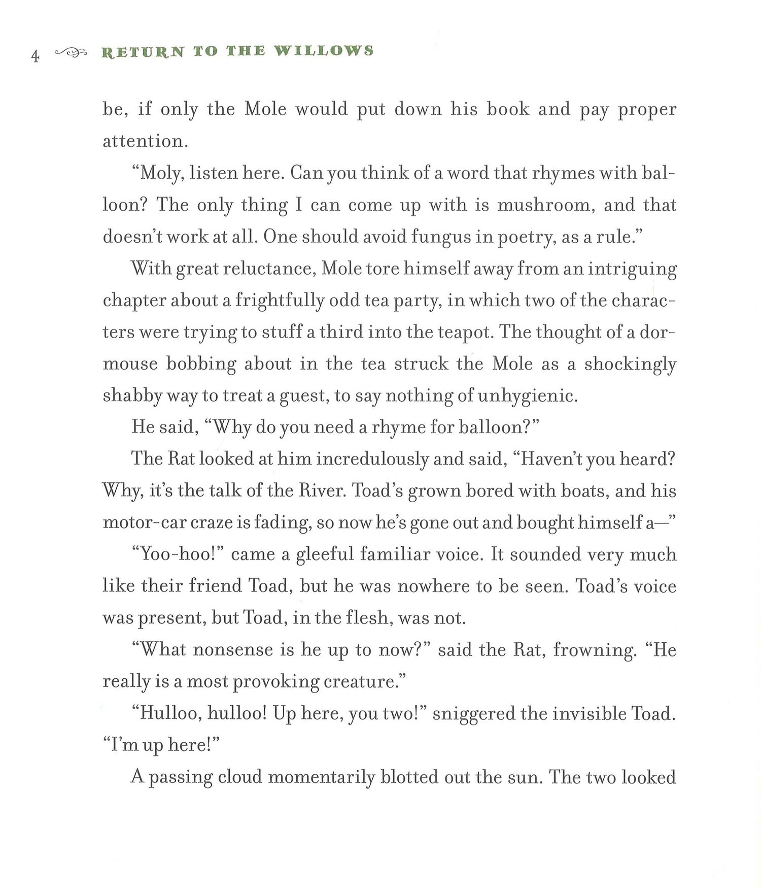 Mole, Ratty, Toad, and Badger are back for more rollicking adventures in this sequel to The Wind in the Willows . With lavish illustrations by Clint Young, Jacqueline Kelly masterfully evokes the magic of Kenneth Grahame's beloved children's classic and brings it to life for a whole new generation.