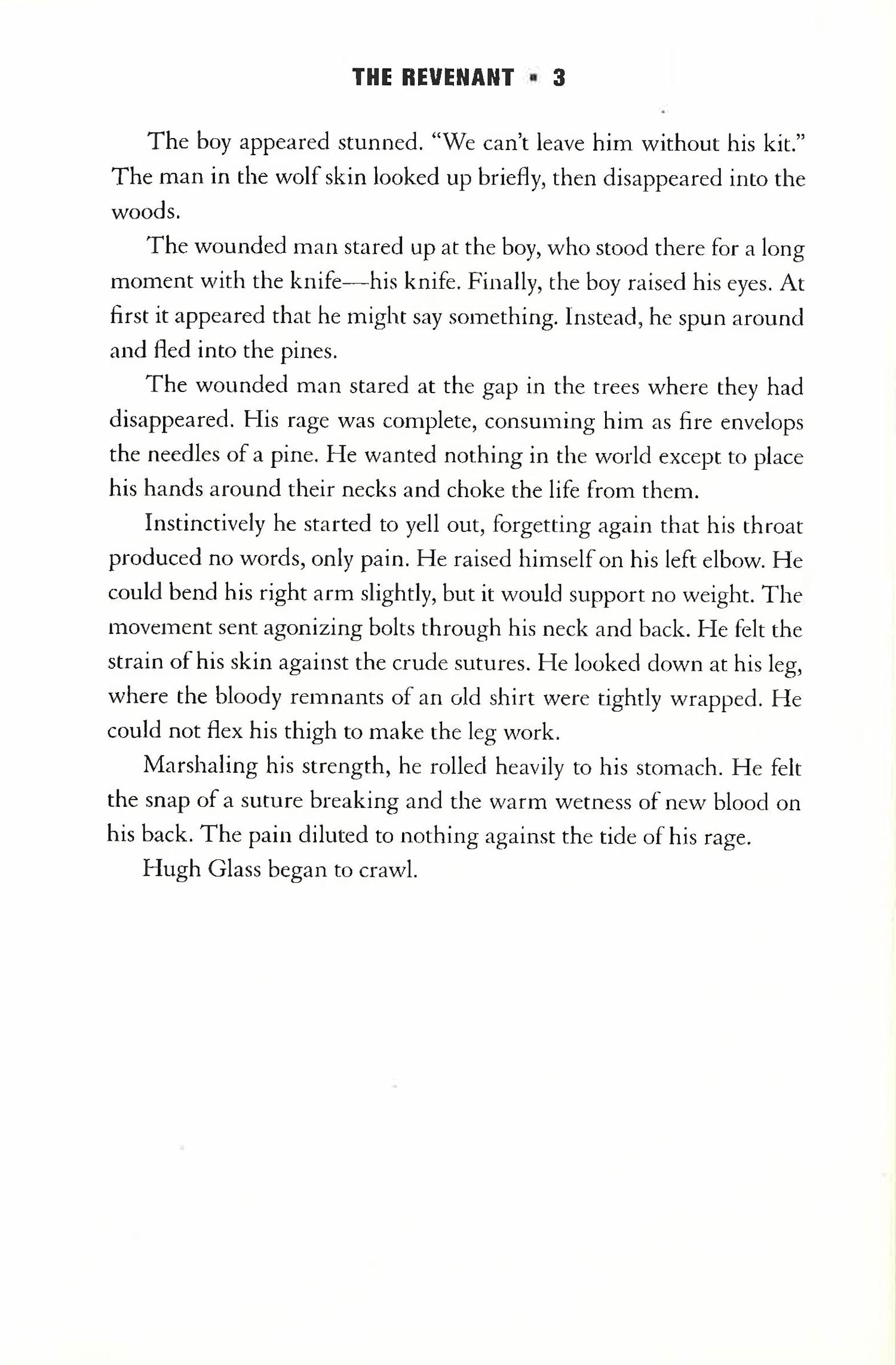The year is 1823, and the trappers of the Rocky Mountain Fur Company live a brutal frontier life. Hugh Glass is among the company's finest men, an experienced frontiersman and an expert tracker. But when a scouting mission puts him face-to-face with a grizzly bear, he is viciously mauled and not expected to survive. Two company men are dispatched to stay behind and tend to Glass before he dies. When the men abandon him instead, Glass is driven to survive by one desire: revenge. With shocking grit and determination, Glass sets out, crawling at first, across hundreds of miles of uncharted American frontier. Based on a true story, The Revenant is a remarkable tale of obsession, the human will stretched to its limits, and the lengths that one man will go to for retribution.