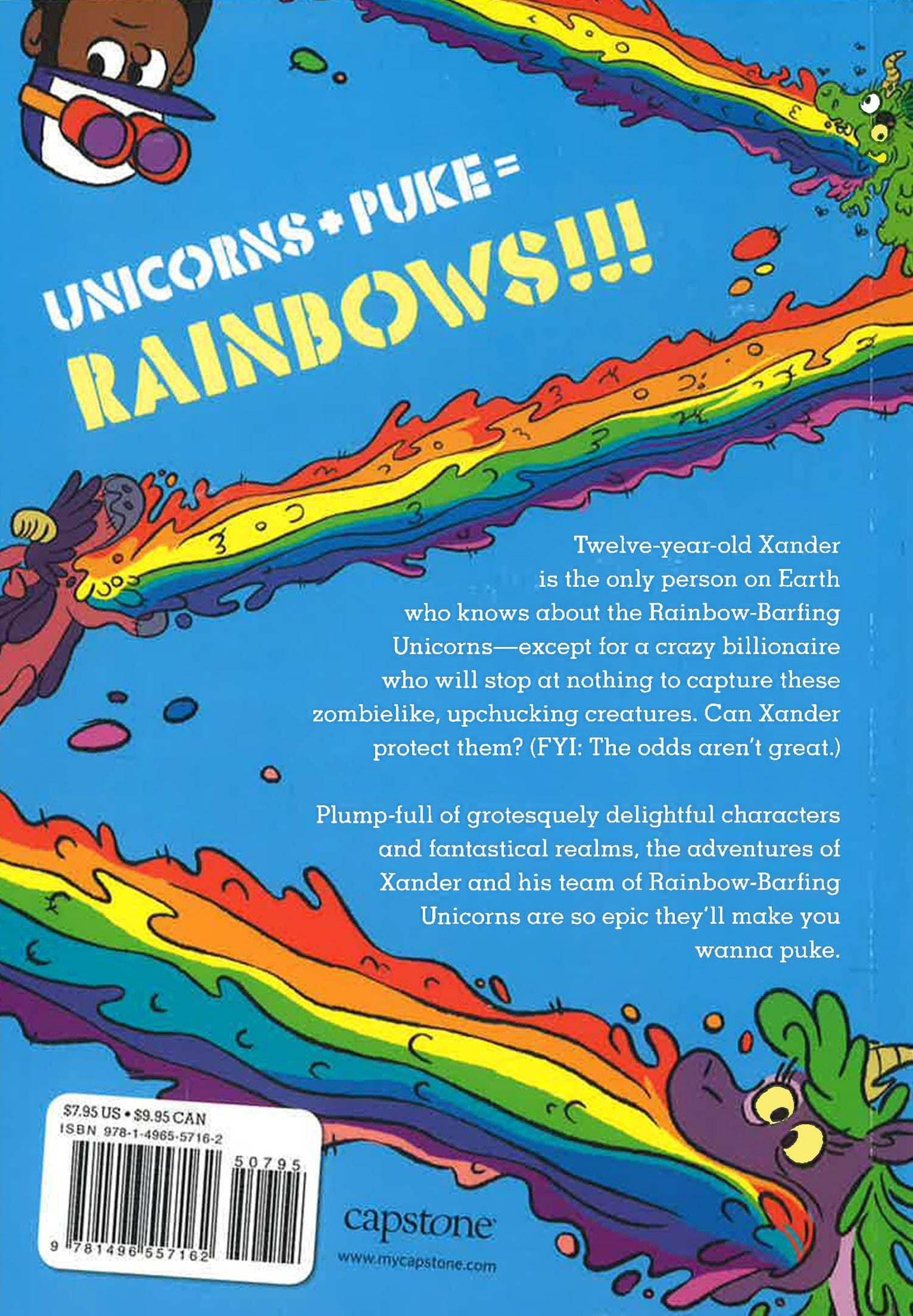 The secret of the Rainbow-Barfing Unicorns is out and that makes Xander Stone sick! Twelve-year-old Xander is the only person on Earth who knows about the Rainbow-Barfing Unicorns. Except, of course, for a rich and crazy billionaire who will stop at nothing to capture these zombielike, upchucking creatures and get even richer and crazier!