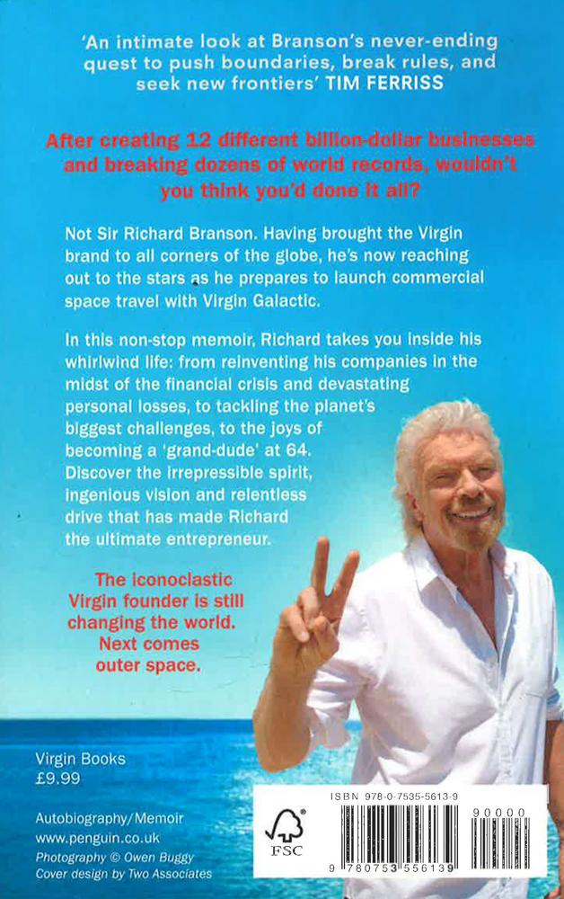 PAPERBACK EDITION FULLY UPDATED WITH TWO NEW CHAPTERSAfter creating 12 different billion-dollar businesses and breaking dozens of world records, wouldn't you think you'd done it all?Not Sir Richard Branson. Having brought the Virgin brand to all corners of the globe, he's now reaching out to the stars as he prepares to launch commercial space travel with Virgin Galactic.In this non-stop memoir, Richard takes you inside his whirlwind life: from reinventing his companies in the midst of the financial crisis and devastating personal losses, to tackling the planet's biggest challenges, to the joys of becoming a 'grand-dude' at 64.Discover the irrepressible spirit, ingenious vision and relentless drive that has made Richard the ultimate entrepreneur.The iconoclastic Virgin founder is still changing the world. Next comes outer space. PAPERBACK EDITION FULLY UPDATED WITH TWO NEW CHAPTERSAfter creating 12 different billion-dollar businesses and breaking dozens of world records, wouldn't you think you'd done it all?Not Sir Richard Branson. Having brought the Virgin brand to all corners of the globe, he's now reaching out to the stars as he prepares to launch commercial space travel with Virgin Galactic.In this non-stop memoir, Richard takes you inside his whirlwind life: from reinventing his companies in the midst of the financial crisis and devastating personal losses, to tackling the planet's biggest challenges, to the joys of becoming a 'grand-dude' at 64.Discover the irrepressible spirit, ingenious vision and relentless drive that has made Richard the ultimate entrepreneur.The iconoclastic Virgin founder is still changing the world. Next comes outer space.