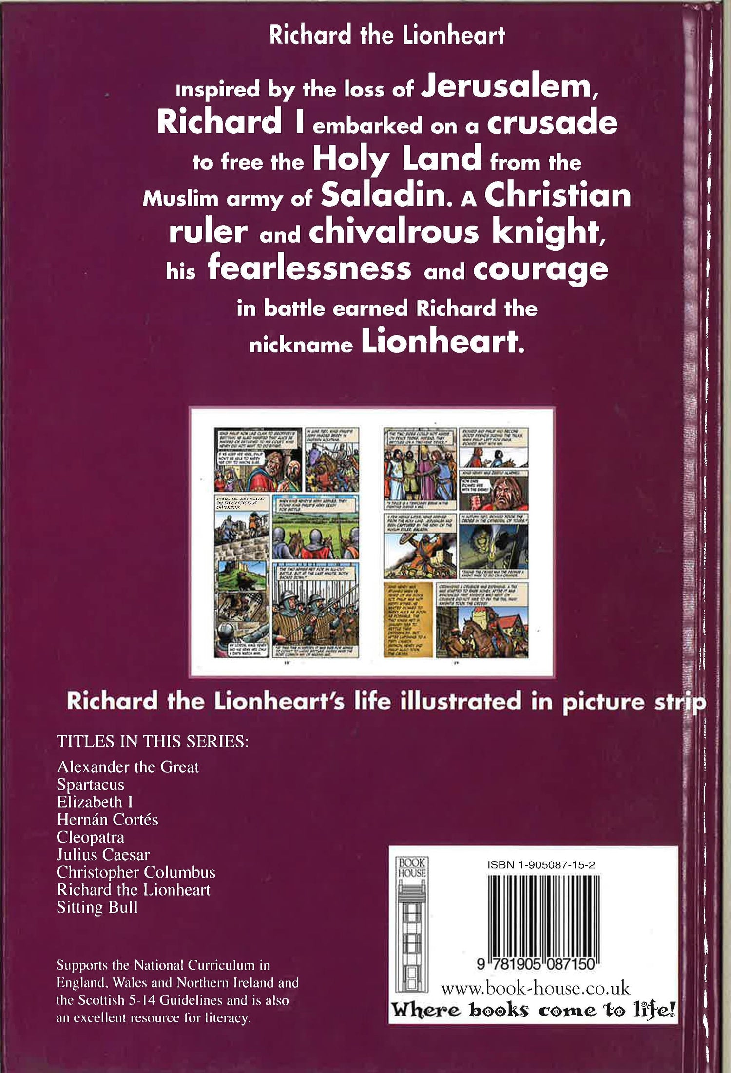 Presented in a lively, full-color graphic-novel style, history comes alive in this groundbreaking curriculum-based series, developed with special consideration for the high-low reader. From the content areas of American history, European history, and ancient history, readers will marvel at the conflicts, triumphs, struggles, and accomplishments of these key historical figures. Each title in the series includes historical background text, maps, primary source images, a glossary, additional resources, and an index. These titles are sure to be received warmly by students, teachers, and librarians alike. Politician, military leader, crusader, and King of England, Richard the Lionheart has been the subject of Middle Ages' studies for centuries. His early years were marked by bitter rivalry with his father and brothers, but once crowned King in 1189, his primary ambition was to lead a crusade to the Holy Land to recapture the city of Jerusalem.