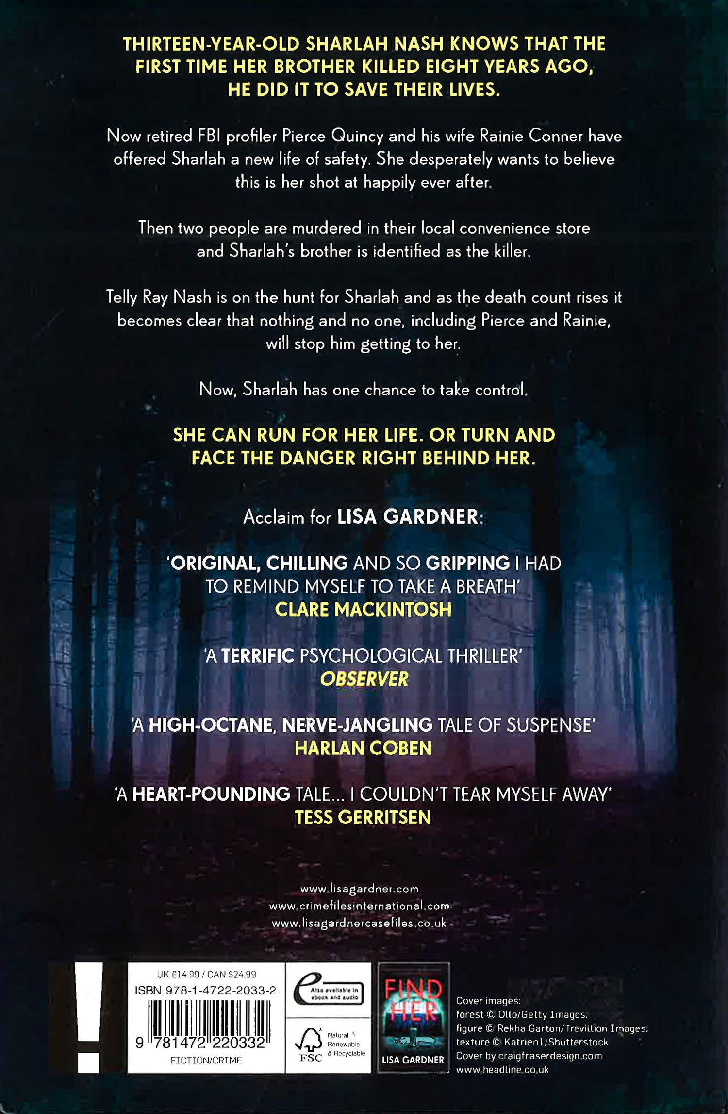 Lisa Gardner's next thriller following her runaway New York Times bestseller Find Her takes her wildly popular brand of suspense to new heights. Thirteen-year-old Sharlah Nash knows that the first time her brother killed eight years ago, he did it to save their lives. Now retired FBI profiler Pierce Quincy and his wife Rainie Connor have offered Sharlah a new life of safety. She desperately wants to believe this is her shot at happily ever after. Then two people are murdered in their local convenience store and Sharlah's brother is identified as the killer. Telly Ray Nash is on the hunt for Sharlah and as the death count rises it becomes clear that nothing and no-one, including Pierce and Rainie, will stop him getting to her. Now, Sharlah has one chance to take control. She can run for her life... or turn and face the danger right behind her.