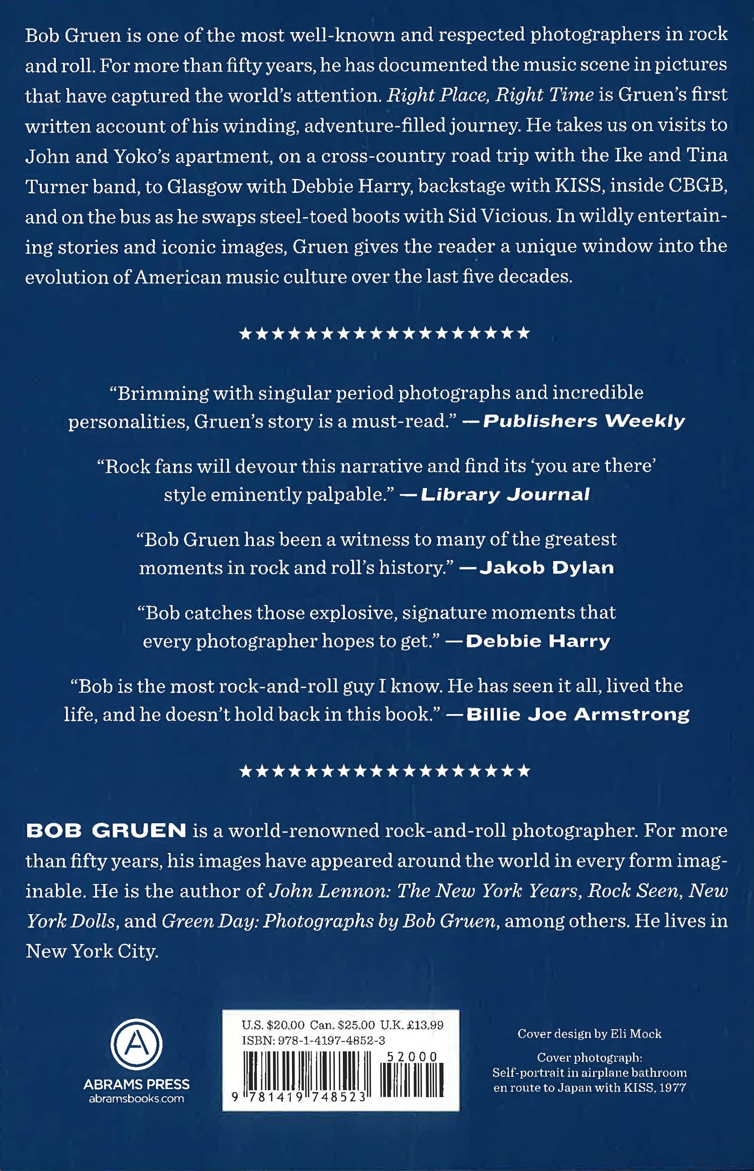 Right Place, Right Time is Gruen’s personal journey, from discovering a love of photography in his mother’s darkroom when he was five, through his time in Greenwich Village for 1960s rock and 1970s punk, to being named the world’s premiere rock photographer by the New York Times. With fast-paced stories and iconic images, Gruen gives the reader both a front-row seat and a backstage pass to the evolution of American music culture over the last five decades.