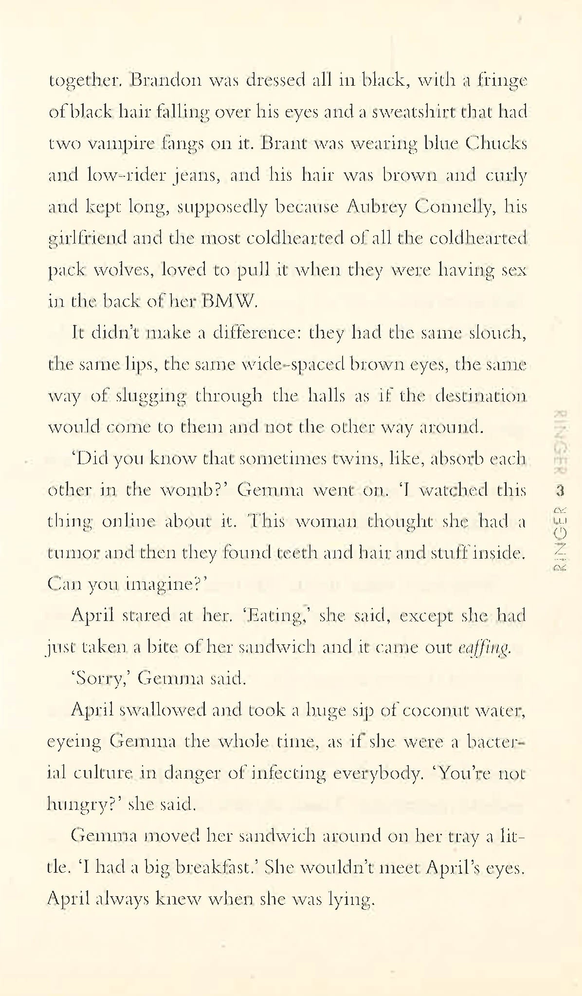 The sequel to the epic two-story novel, REPLICA. Like its ambitious companion novel, Replica, this far-reaching novel by the powerhouse author of Before I Fall and the Delirium trilogy digs deep into questions of how to be a human being in a world where humanity cannot be taken for granted. In the world outside of the Haven Institute, Lyra and Caelum are finding it hard to be human-and Lyra, infected at Haven with a terrible disease, finds her symptoms are growing worse. When Caelum leaves without warning, Lyra follows him, seeking a pioneering organization in Philadelphia that might have a cure. But what they uncover there is a shocking connection to their past, even as their future seems in danger of collapsing.Though Gemma just wants to go back to her normal life after Haven, she soon learns that her powerful father has other plans for the replicas-unless she and her boyfriend Pete can stop him. But they soon learn that they aren't safe either. The Haven Institute wasn't destroyed after all, and now Gemma is the one behind the walls.Bestselling author Lauren Oliver brings the Replica duology to a shocking close in Ringer, but like both Gemma and Lyra, you won't be able to leave the world of Haven behind after you've turned the last page.