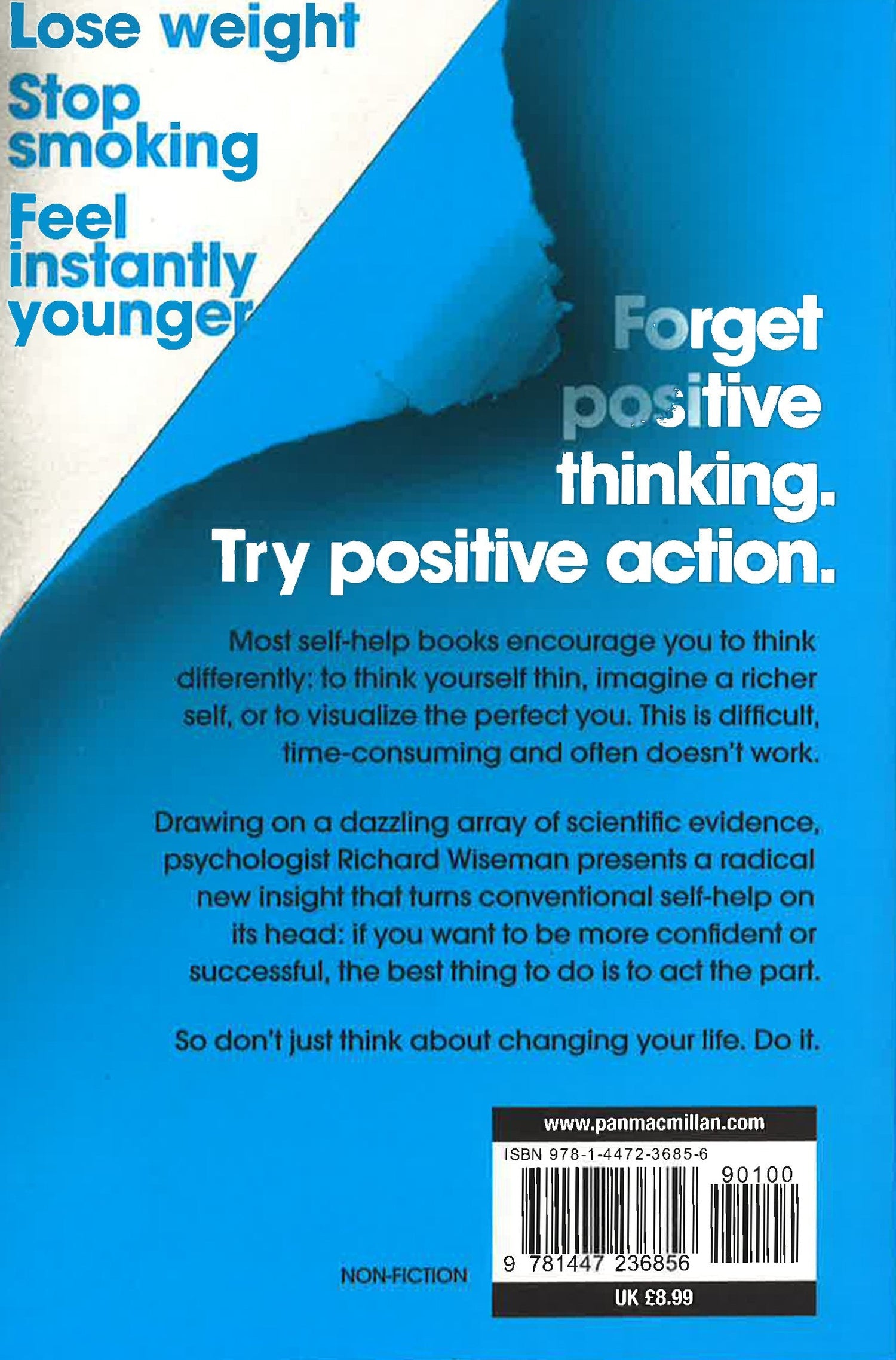Rip up this book and unleash your hidden potential Most self-help books encourage you to think differently; to think yourself thin, imagine a richer self or to visualize the perfect you. This is difficult, time consuming and often doesn't work. Drawing on a dazzling array of scientific evidence, psychologist Richard Wiseman presents a radical new insight that turns conventional self-help on its head: simple physical actions represent the quickest, easiest and most powerful way to instantly change how you think and feel. So don't just think about changing your life. Do it. *Discover the simple idea that changes everything *Lose weigh * Stop smoking * Feel instantly younger