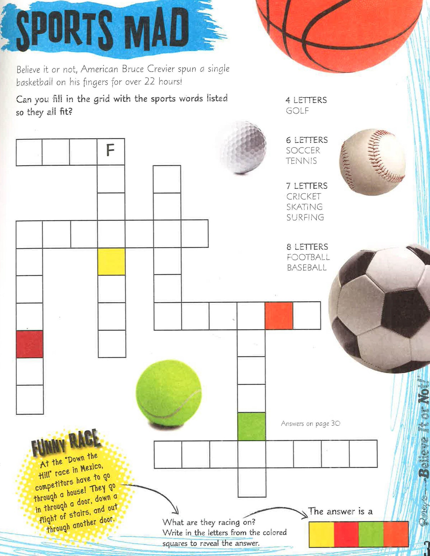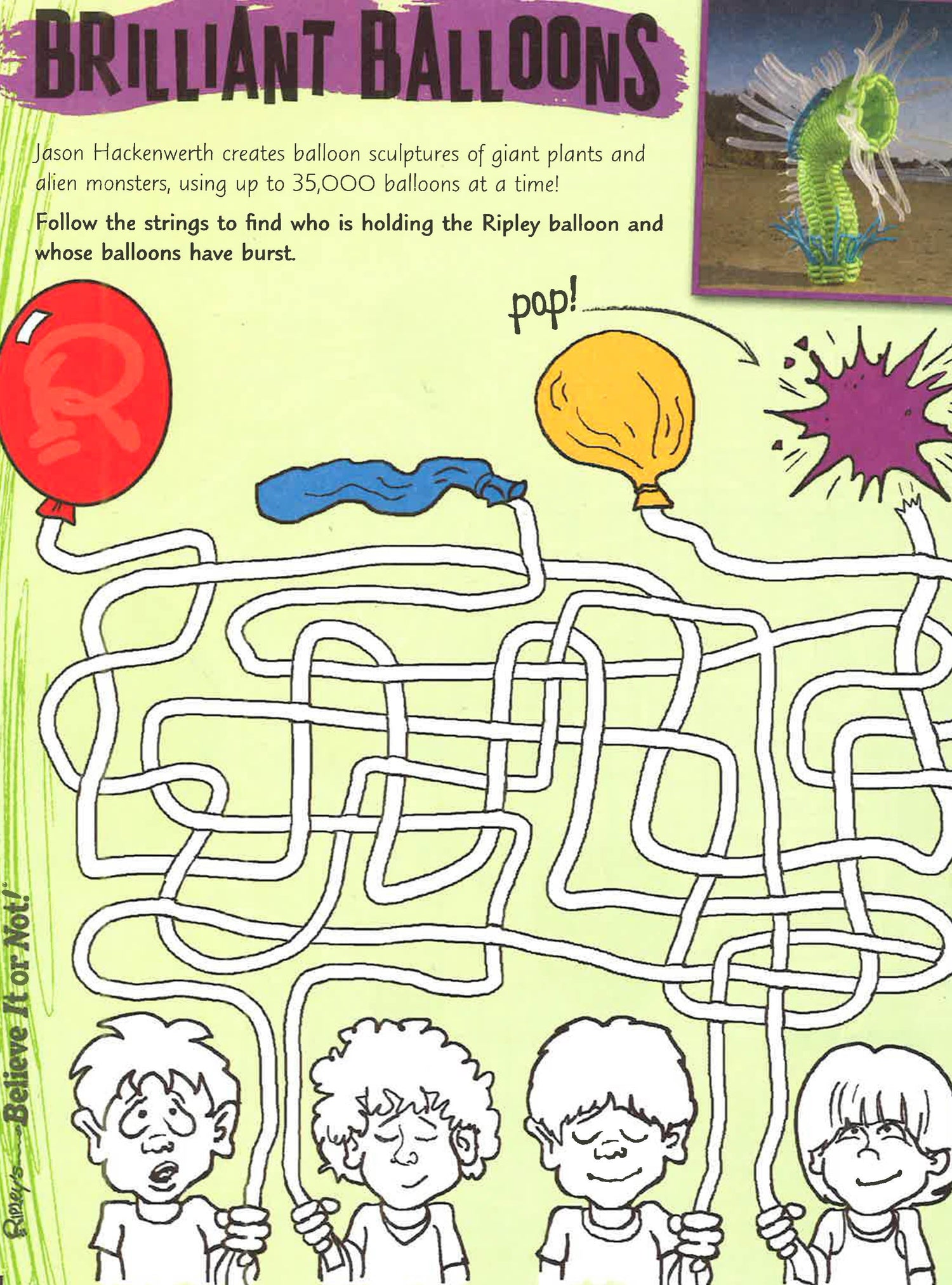 The Ripley's Believe It or Not! Zany Puzzle Book is packed with puzzles, mazes and quizzes. This unique children's activity book is loaded with unbelievable facts, amazing stories, and incredible animals. It is sure to keep kids entertained and make learning fun. Ripley's Believe It or Not! Zany Puzzle Book celebrates the extraordinary side of life. Designed for children ages 6-9, the activities inside feature amazing achievements, incredible animals, and bizarre facts straight from the Ripley's Believe It or Not! archives. Complete these puzzles, mazes, and quizzes to learn about a pet hippo, a giant donut and more! This book is certain to keep kids laughing and learning for hours. Be sure to check out the other great titles in the Ripley's Believe It or Not! Activity Book series.
