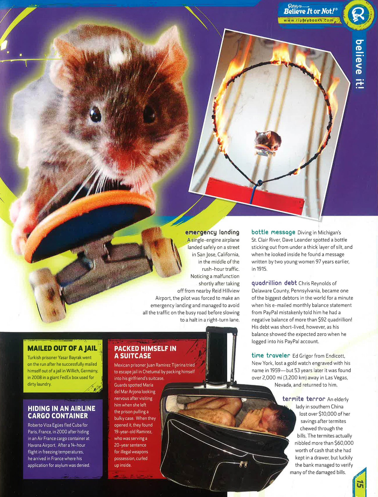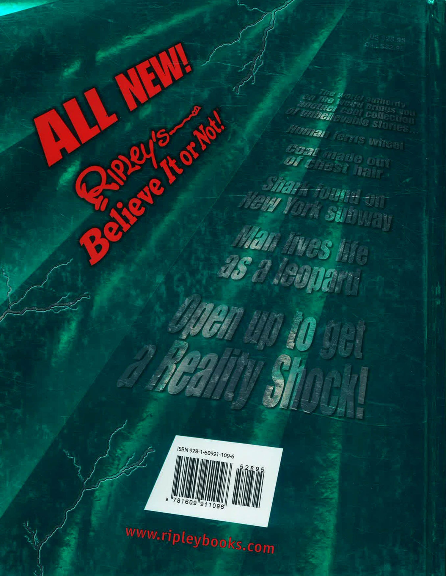 Reality Shock! Is filled with more of the amazing facts, unbelievable stories and extraordinary photography that makes Ripley’s Believe It or Not! so popular. Read all about the amazing things that people all over the world have done- from insane stunts to crazy traditions. Take a closer look at the extraordinary images nature produces, such as mutated animals and amazingly impossible vistas. Crystal clear photography paired with zany stories, amazing facts and figures that are undeniably true but incredibly hard to believe will make this book a must have for every household.