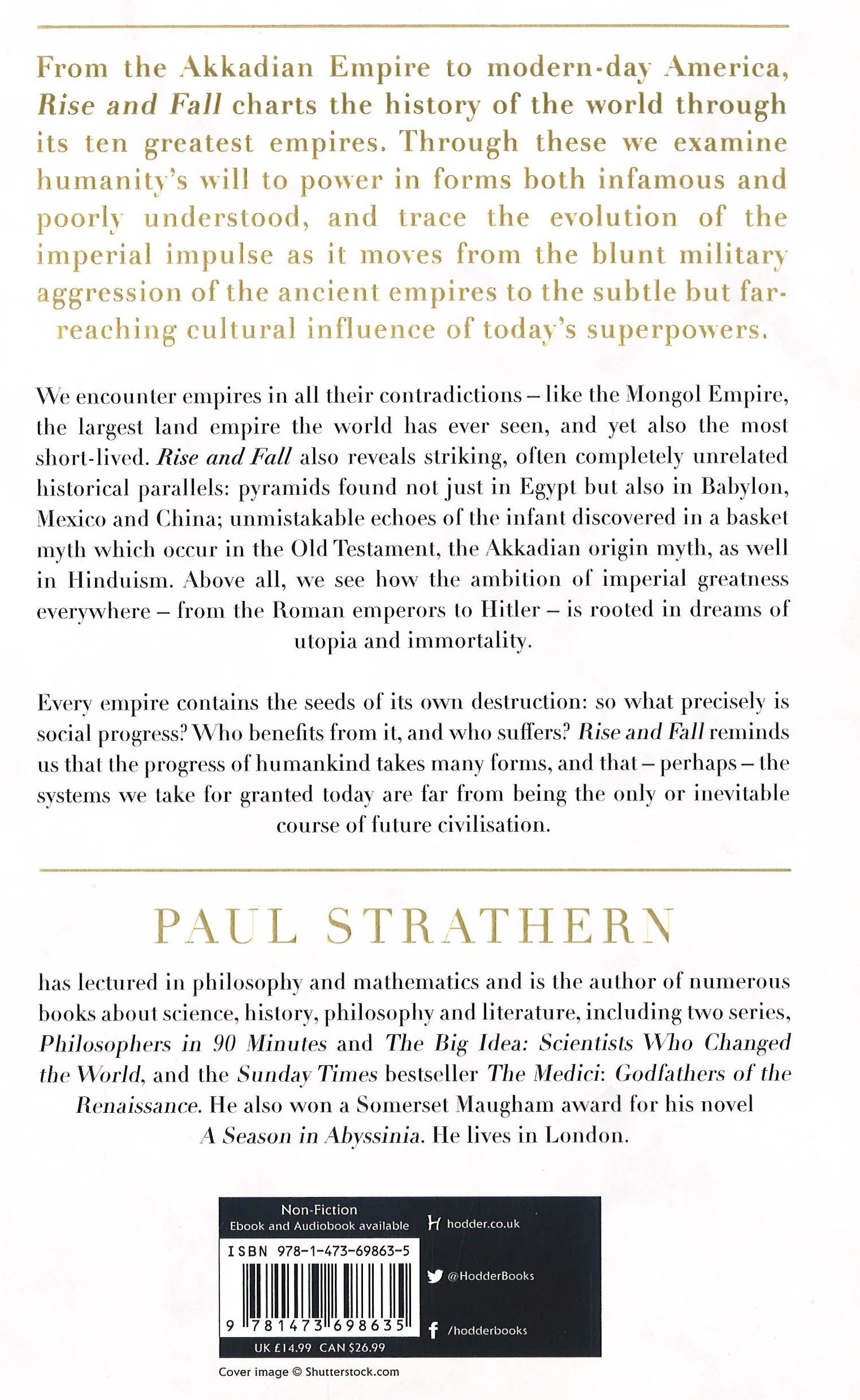 Combining breathtaking scope with masterful concision, Paul Strathern traces connections across four millennia and sheds new light on these major civilizations - from the Mongol Empire and the Yuan Dynasty to the Aztec and Ottoman, through to the most recent and biggest Empires: the British, Russo-Soviet and American. Charting 5,000 years of global history in ten succinct chapters, Rise and Fall makes comprehensive and inspiring reading to anyone fascinated by the history of the world.