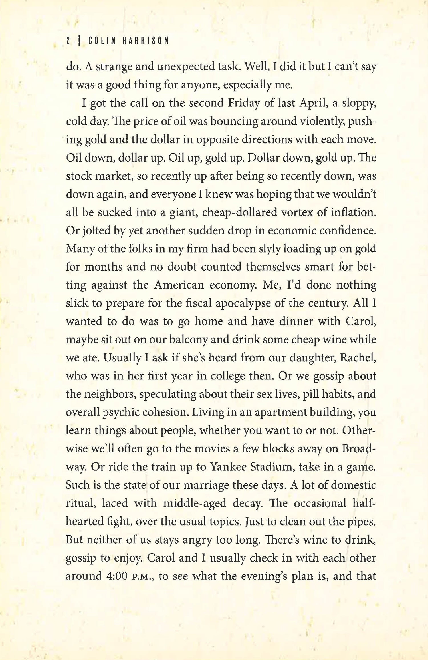George Young never thought of himself as a detective, but that’s pretty much his vocation - an attorney at a top insurance firm, it’s his job to pin down suspicious claims. But Mrs. Corbett, the rich, eccentric wife of the firm’s founder, has it in mind to put George’s skills to a peculiar assignment. With only a few months left to live, her one desire is to know the true circumstance of her son Roger’s violent death. George’s investigation leads him to Roger’s mistress, a cagey Czech hand model named Eliska, who can cast a seductive spell simply by removing her gloves. Did Eliska's motives for latching on to Roger get him killed? Or did some of her shadowy and dangerous little friends take care of the job? And why were there boxes and boxes of Christmas ornaments in the dead man’s apartment? George will have to take a few chances of his own if he wants to get to the bottom of Roger’s death for Mrs. Corbett. Set against a volatile and vividly drawn Manhattan, Risk is prime Colin Harrison.