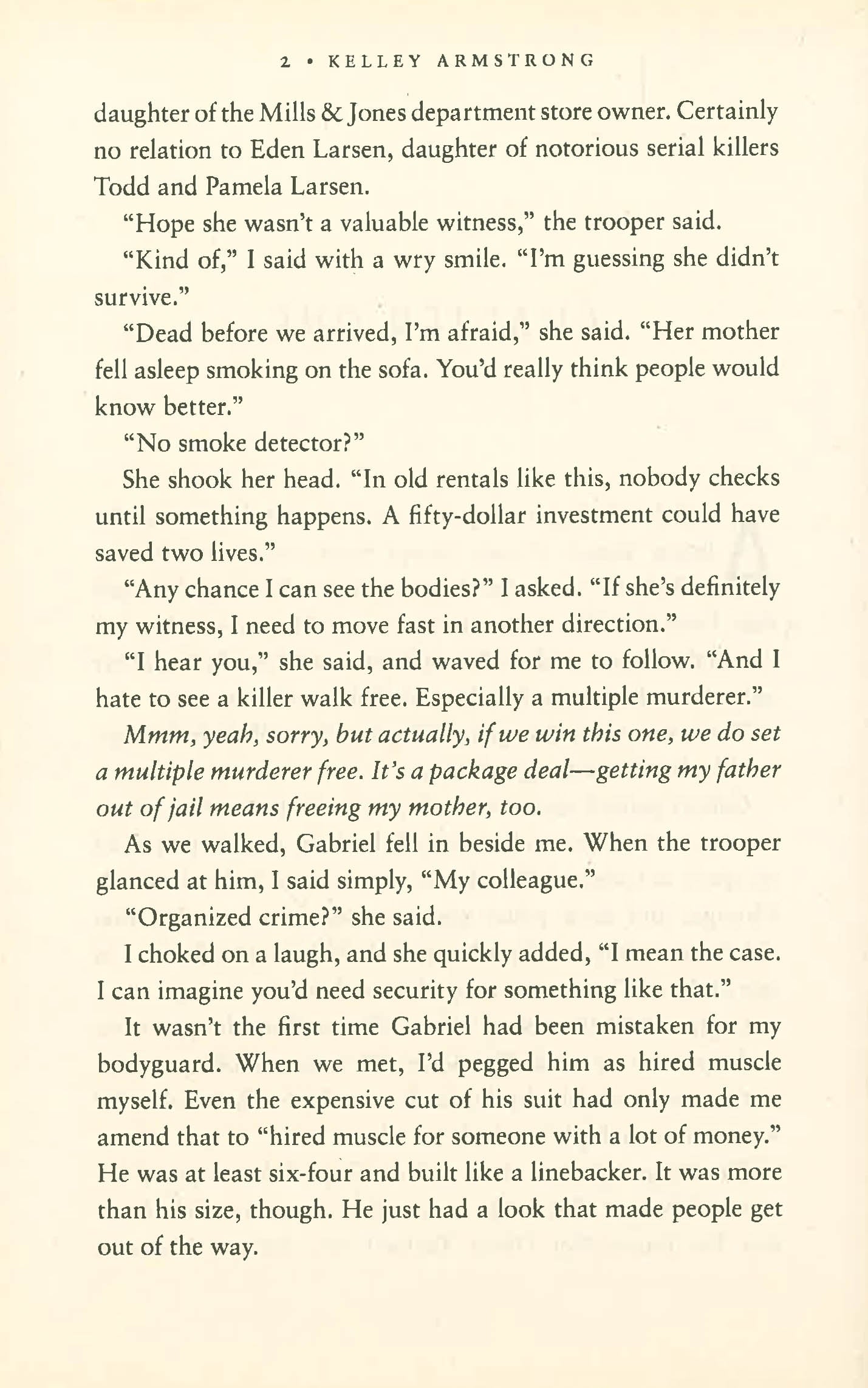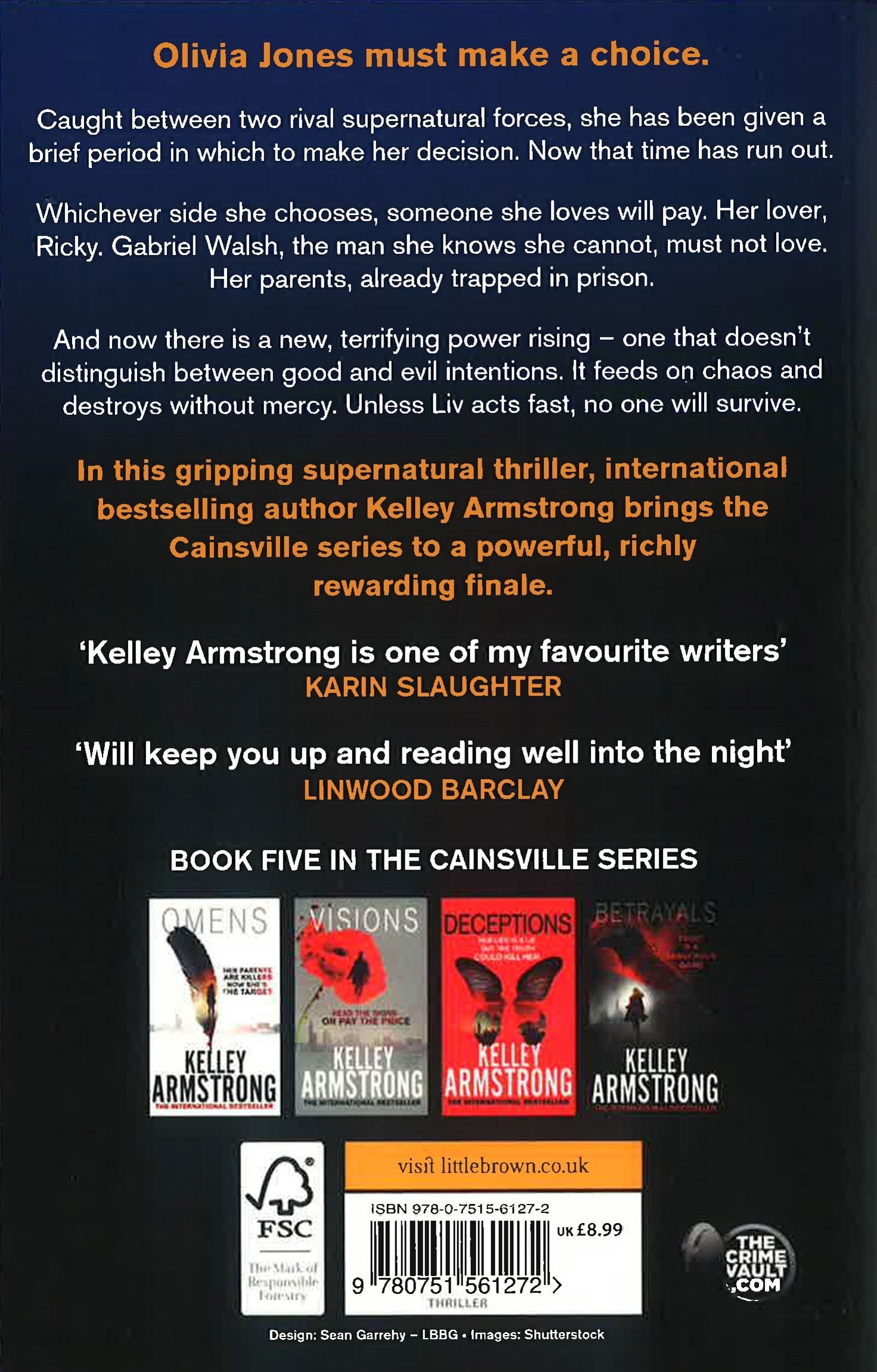 Olivia Jones must make a choice. Caught between two rival supernatural forces, Liv was granted a brief period in which to make her decision. Now that time has run out. Whichever side she chooses, someone she loves will pay. Her lover, Ricky. Gabriel Walsh, the man she knows she cannot, must not love. Her parents, already trapped in prison. And now there is a new, terrifying power rising - one that doesn't distinguish between good and evil intentions. It feeds on chaos and destroys without mercy. Unless Liv acts fast, no one will survive. In this gripping thriller, international bestselling author Kelley Armstrong brings the Cainsville series to a powerful, richly rewarding climax.