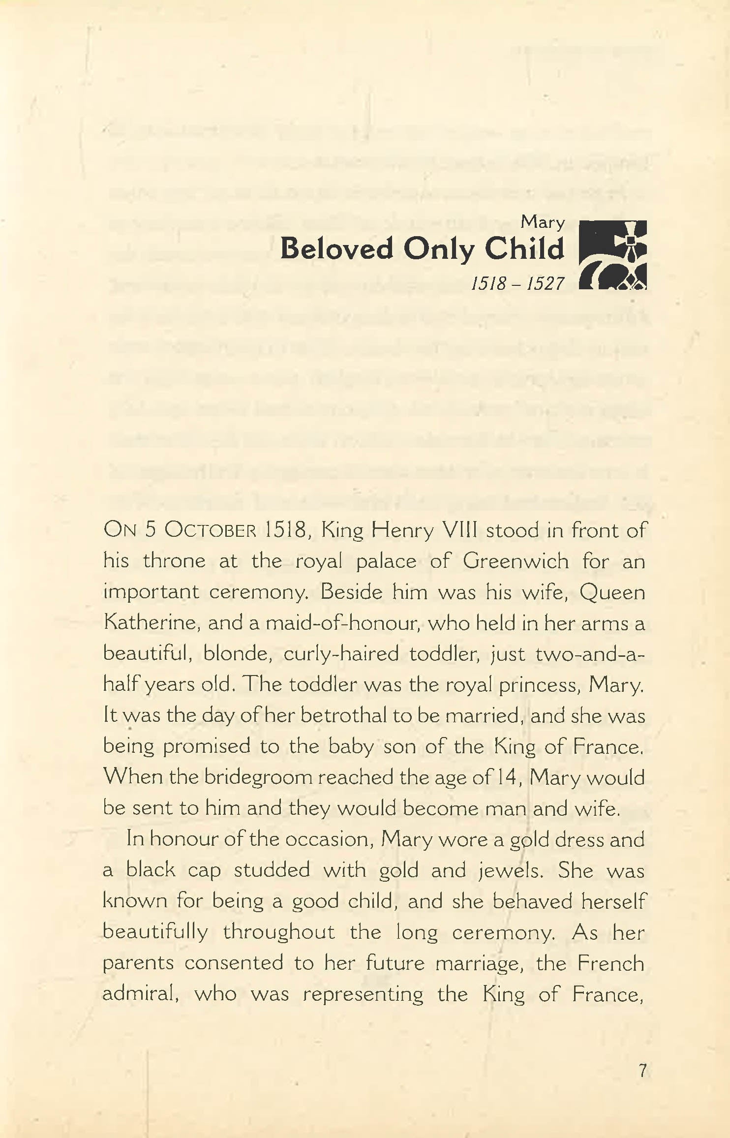 Forced by her father and brother to publicly renounce her beloved religion, Mary Tudor has a heavy cross to bear. Determined to restore England to the true Church, she decides to take matters into her own hands.