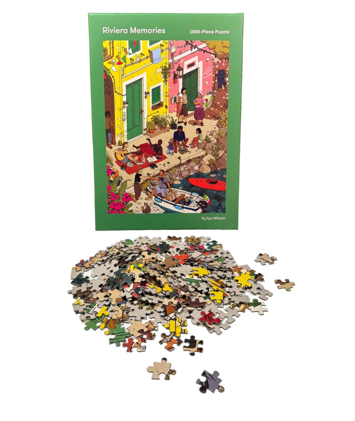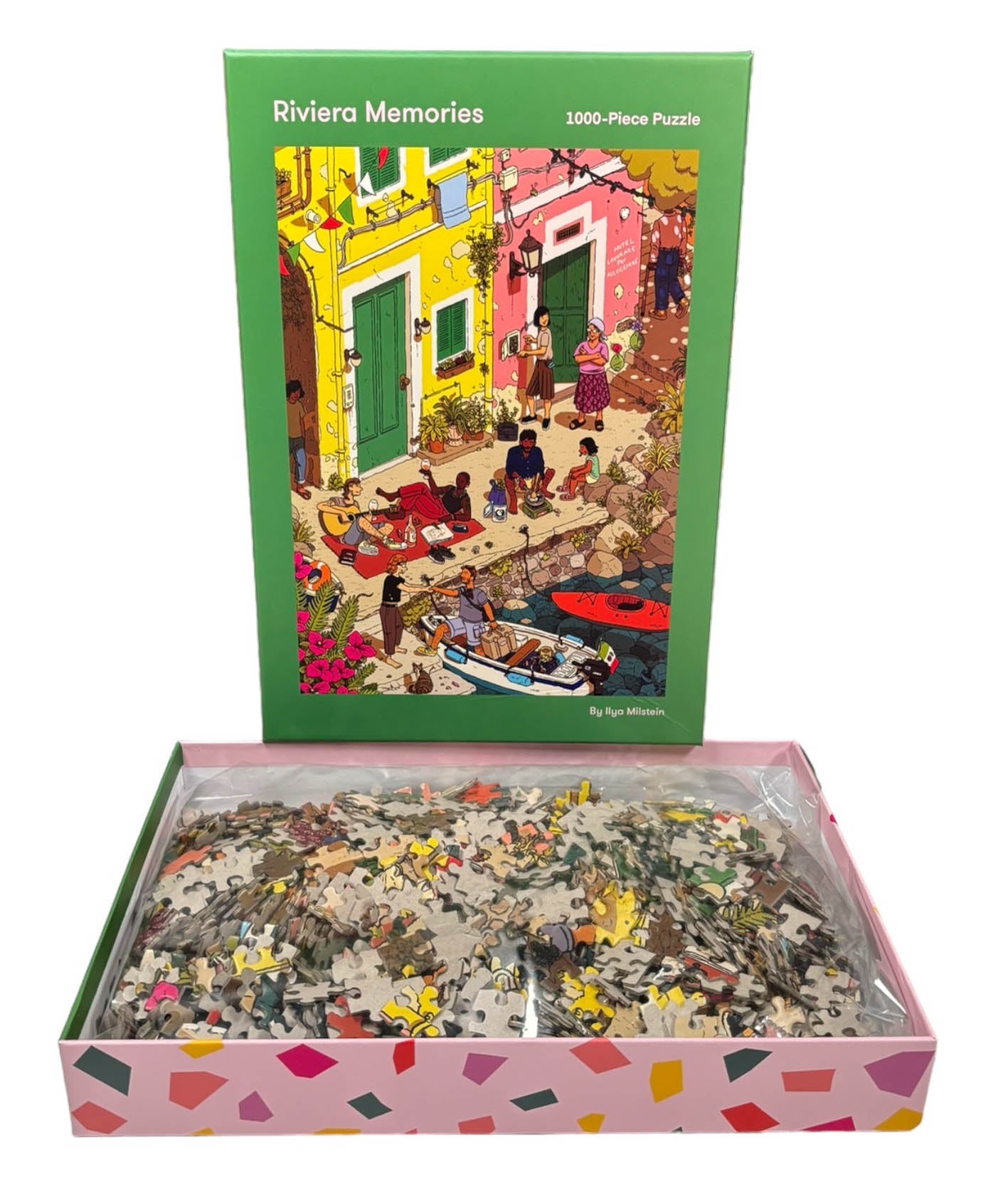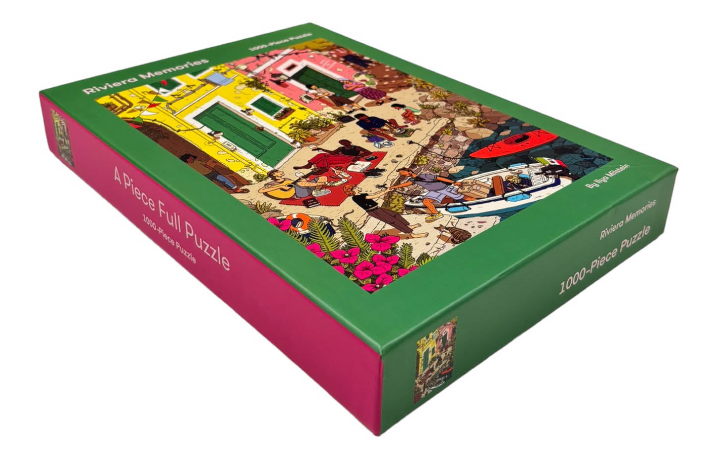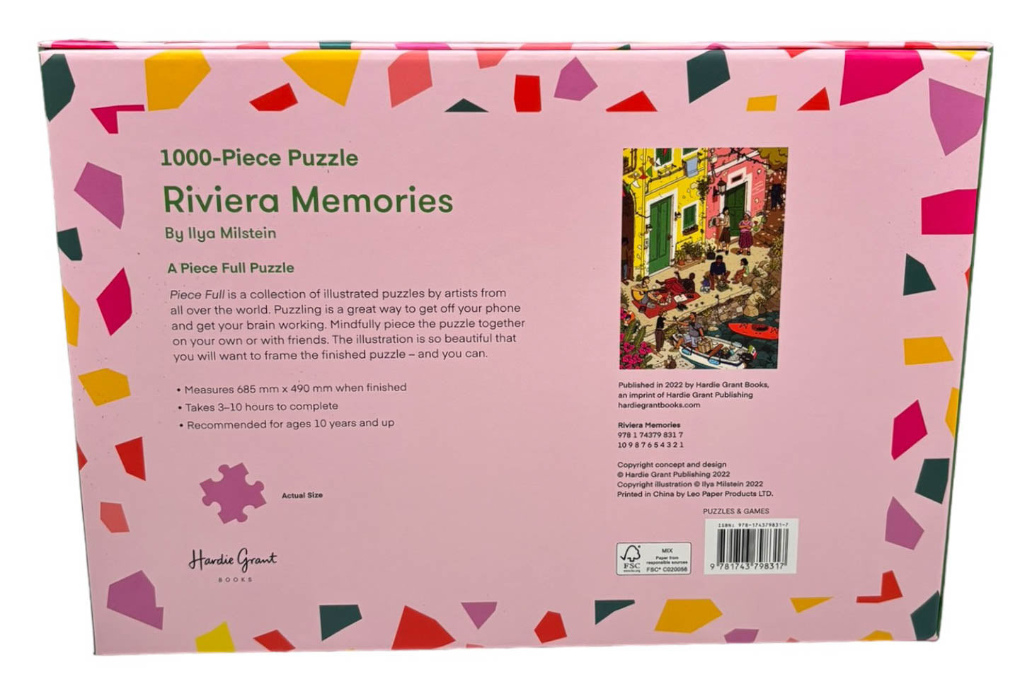 Riviera Memories: 1000-Piece Puzzle is a jigsaw puzzle illustrated by Ilya Milstein, an Australian artist living in New York. Set in a colourful and gently ageing seaside town, Riviera Memories depicts a range of travellers meaningfully interacting with their surroundings in the beautiful Italian Riviera: cooking, sketching, and enjoying conversation. Ilya Milstein is the illustrator of The Raconteur: 1000-Piece Puzzle, a talented artist who has also worked for illustrious clients like The New York Times, The New Yorker, Monocle, Apple, Google, Spotify, among others. Brimming with hidden detail and eye-catching designs, the Piece Full puzzle series offers beautiful projects for mindful gamers and art lovers alike. Each puzzle takes between 3-10 hours to complete and the final artwork measures 685 x 480 mm. You can even make it accessible art by framing the finishing product!