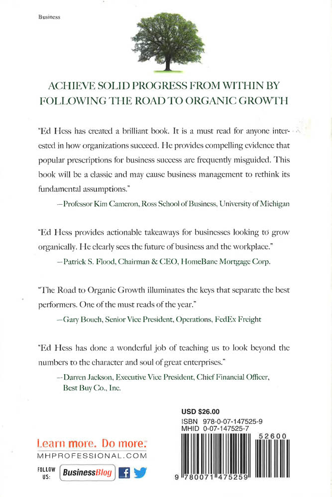 In The Road to Organic Growth, Edward Hess shares the full results of his breakthrough study, providing fresh, and often-surprising perspectives on what it really takes to foster organic growth. Using instructive examples from leading companies such as SYSCO, Best Buy,Tiffany & Company, Outback Steakhouse, and Stryker Corporation, Hess reveals the strategies these trailblazers used to achieve long-term growth from within.