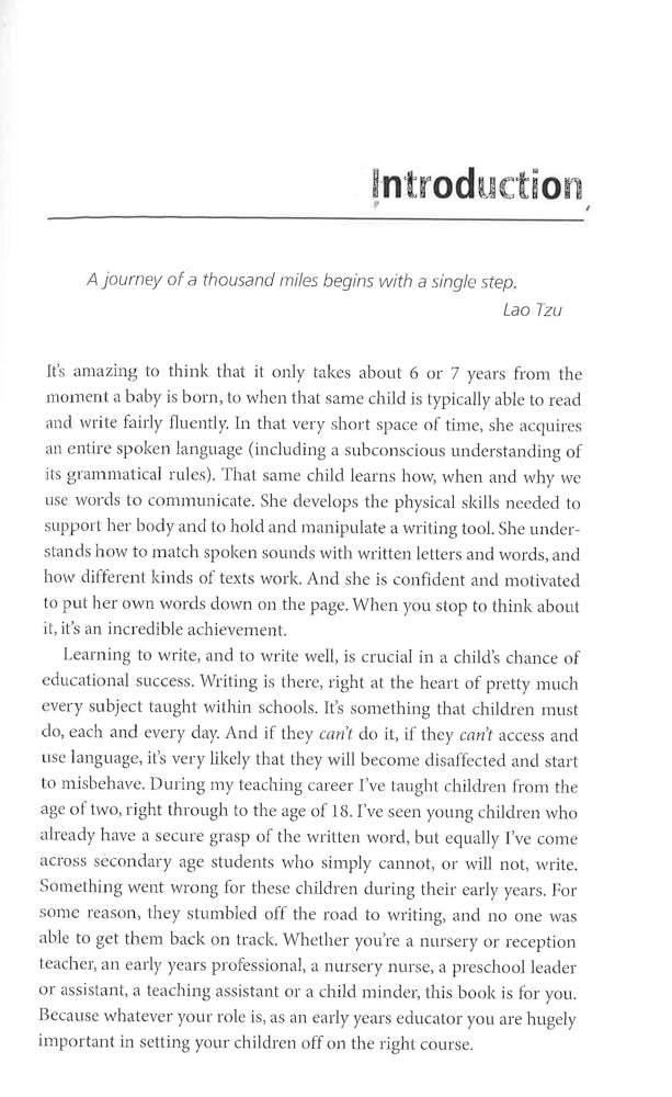 The Road to Writing takes early years practitioners on a journey; the journey young children make when they learn their first words and make their first marks. Sue Cowley offers activities and practical advice to inspire practitioners to try a wide range of creative approaches to improve mark making in the early years. There are ideas for building finger strength and eye-to-hand coordination, activities to help children to understand the concept of symbols and signs, and strategies for building confidence in writing and reading. You can find your way through the book by following the signposts and you'll find plenty of interesting diversions along the way to develop children's key skills and motivation. This accessible book includes bulleted lists, photographs of children writing and examples of early marks to illustrate how children's communication skills develop. Sue also gives tips on getting boys engaged in writing, and there is a companion website with downloadable resources and useful links. This book is an invaluable source of inspiration for all early years practitioners and parents of children aged 3-7.