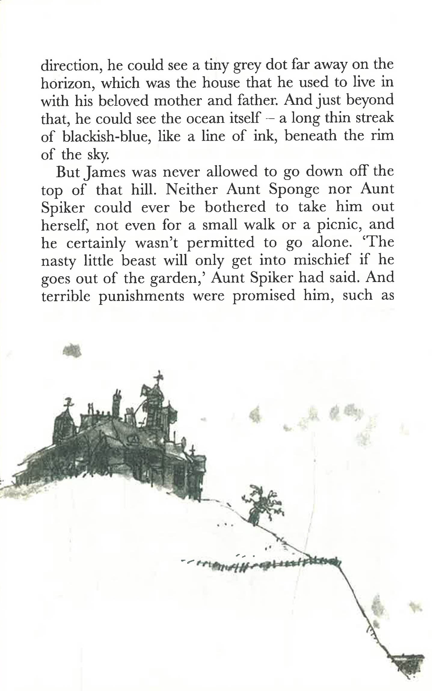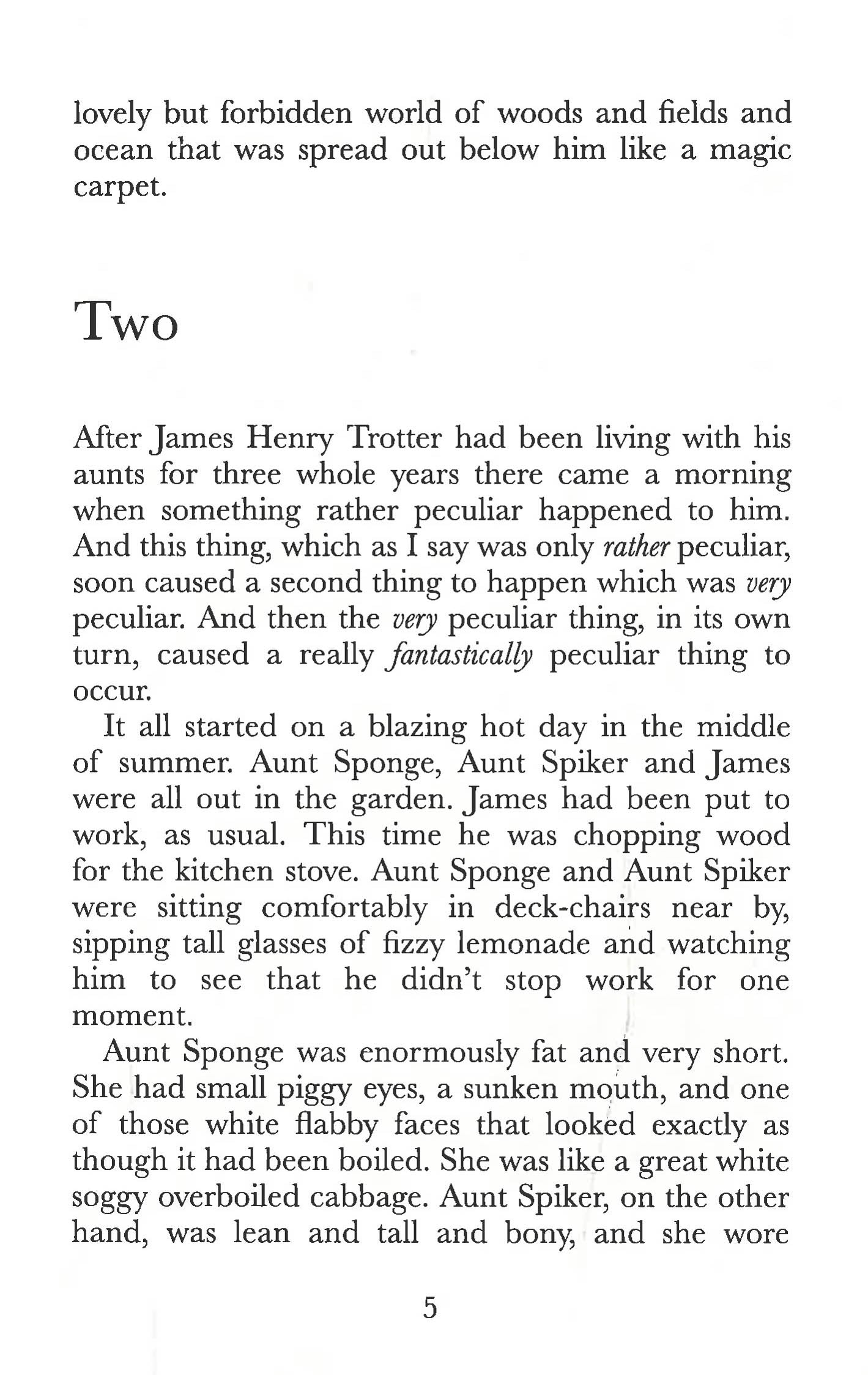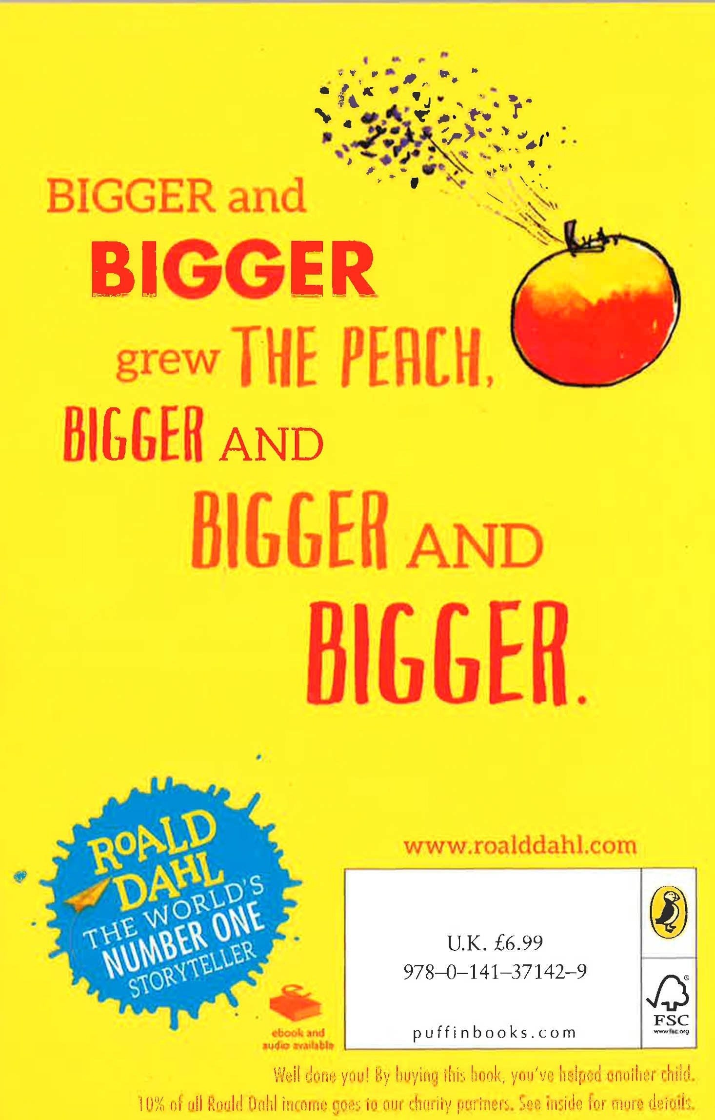 From the bestselling author of Charlie and the Chocolate Factory and The BFG! After James Henry Trotter's parents are tragically eaten by a rhinoceros, he goes to live with his two horrible aunts, Spiker and Sponge. Life there is no fun, until James accidentally drops some magic crystals by the old peach tree and strange things start to happen. The peach at the top of the tree begins to grow, and before long it's as big as a house. Inside, James meets a bunch of oversized friends--Grasshopper, Centipede, Ladybug, and more. With a snip of the stem, the peach starts rolling away, and the great adventure begins!