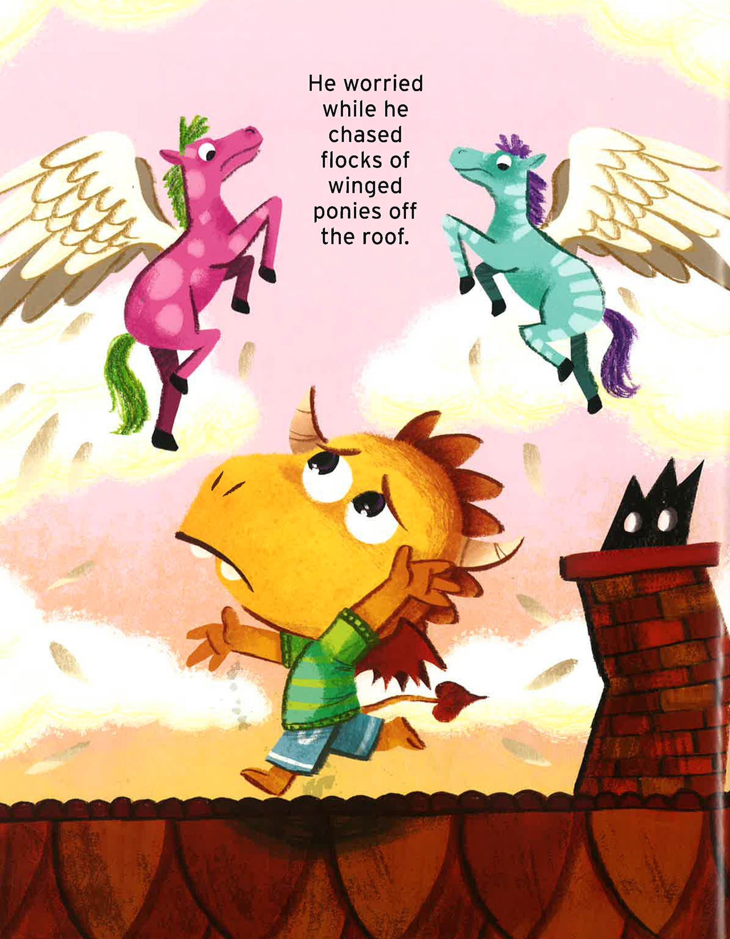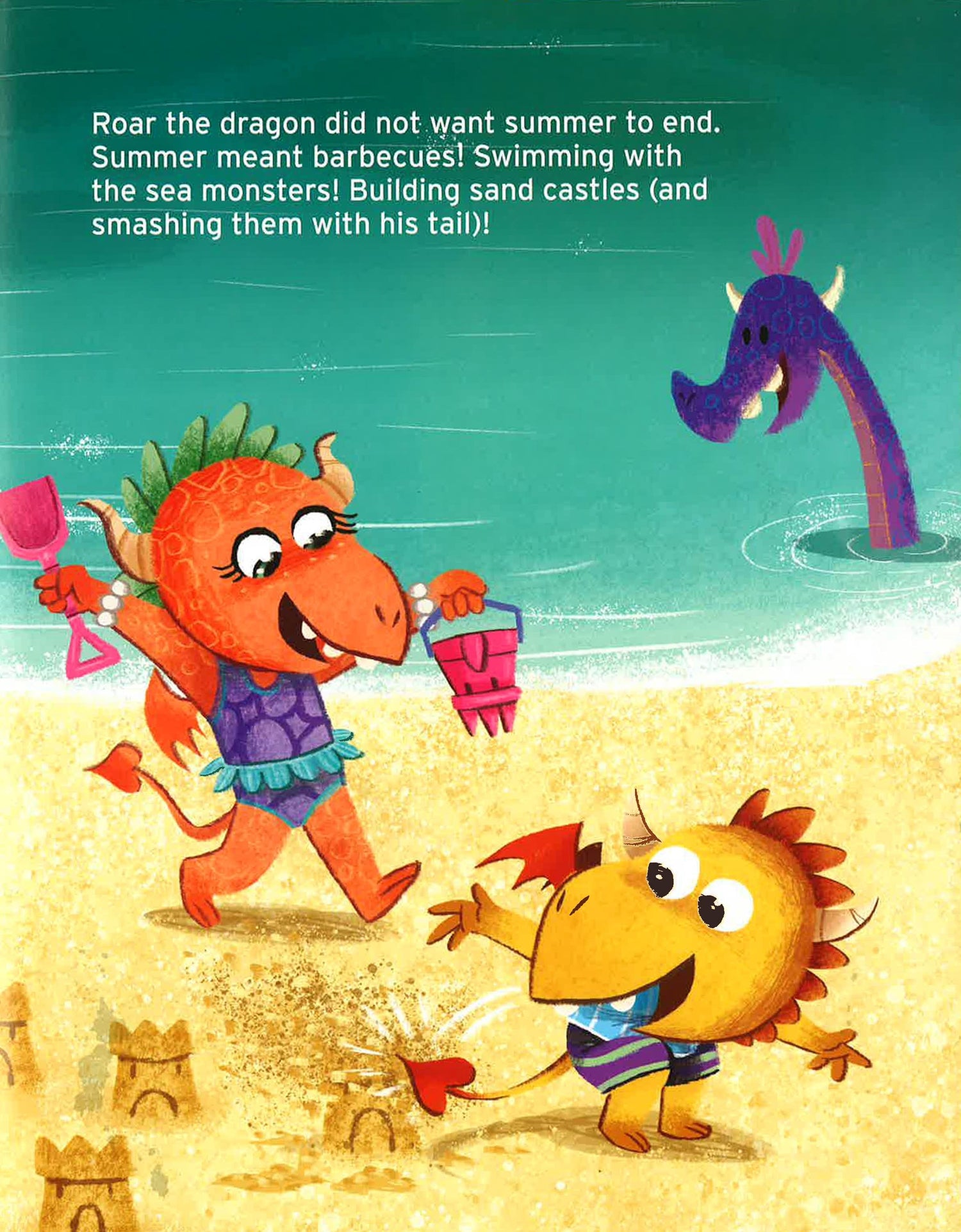 Roar is worried about his first day at school. He's worried that he'll have to do really hard things, like molt his scales and fly over a volcano. And what if his teacher doesn't like dragons? Big sister Sparkles reassures Roar That school is fun. And when the first day of school arrives, Roar finds his worries melt away. He meets new friends, plays dragon games, listens to fun stories, and finds a way to thank his sister for support. Sarah Beth Durst's imaginative story and Ben Whitehouse's fresh illustrations come together to squelch first-day-of-school anxieties.