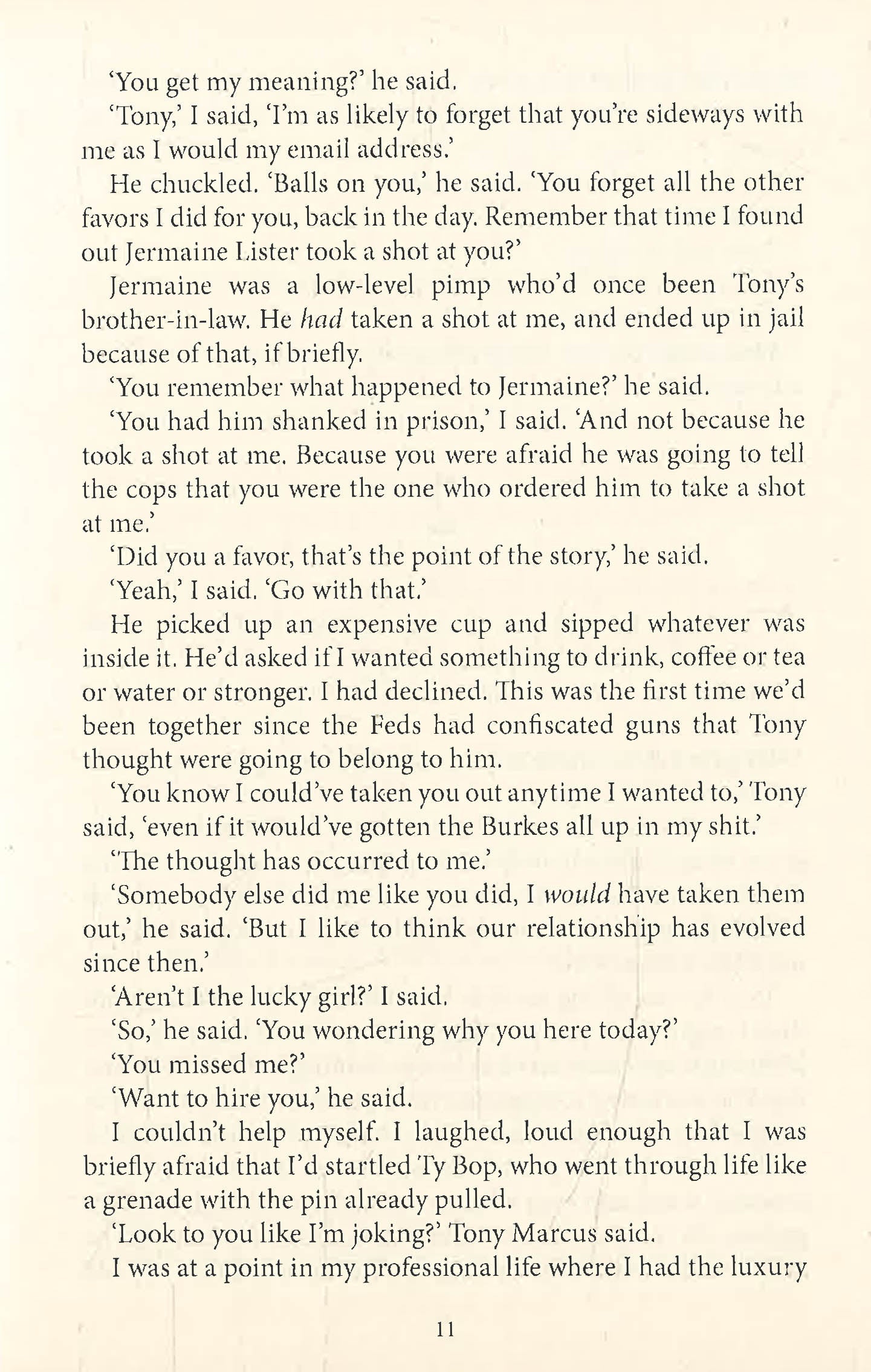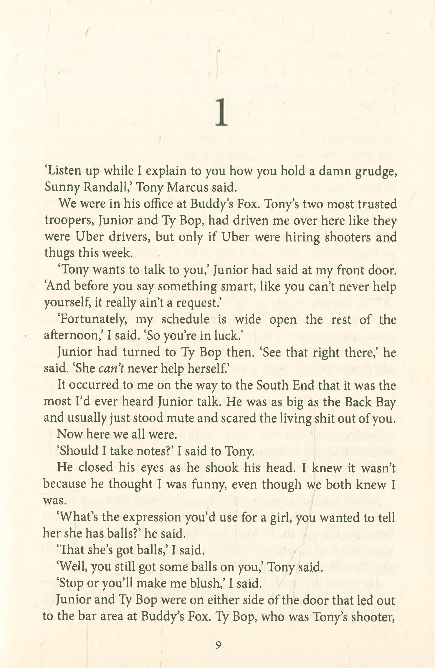 When Sunny's long-time gangster associate Tony Marcus comes to her for help, Sunny is surprised - after all, she double-crossed him on a recent deal, and their relationship is on shakier ground than ever. But the way Tony figures it, Sunny owes him, and she is willing to consider his case if it will clear the slate.