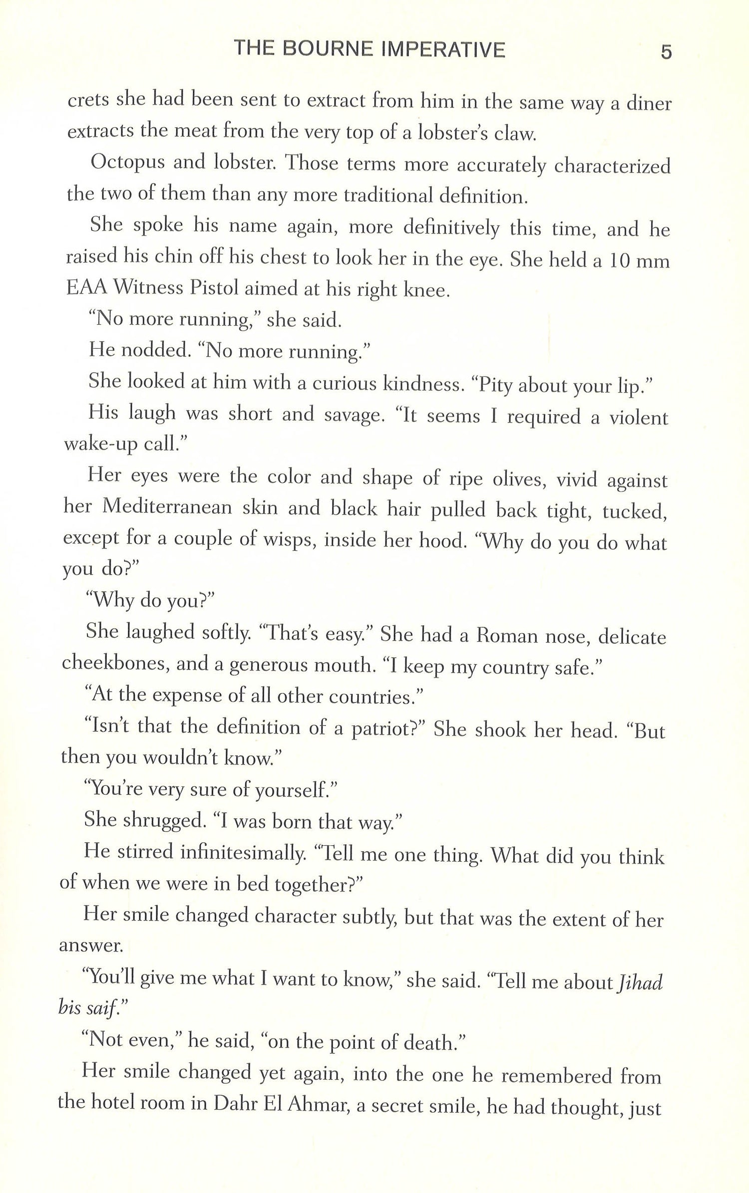 The man Jason Bourne fishes out of the freezing sea is near death, half-drowned and bleeding profusely from a gunshot wound. He awakens with no memory of who he is or why he was shot-and Bourne is eerily reminded of his own amnesia. Then Bourne discovers that the Mossad agent named Rebeka is so determined to find this injured man that she has gone off the grid, cut her ties to her agency, and is now being stalked by Mossad's most feared killer. Do the answers to these mysteries lie back in southeast Lebanon, in a secret encampment to which Bourne and Rebeka escaped following a firefight weeks ago?