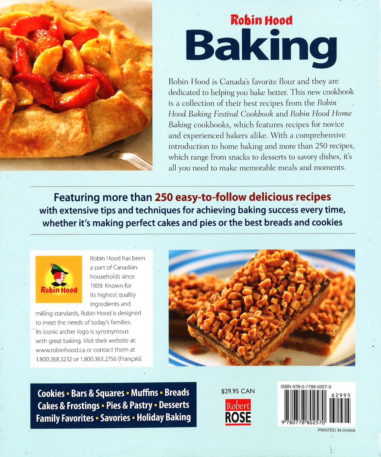 Robin Hood is Canada's number one name in flour. Dedicated to helping you bake better, Robin Hood's test kitchens are constantly developing recipes for everything from muffins, biscuits, cookies, and cakes to main meal ideas like pizzas and pot pies. This outstanding collection of 250 recipes will appeal to both the novice and experienced baker and will inspire you to explore the wonderful world of baking. Extensive tips and techniques accompany each recipe, and the Baking Basics section in the introduction covers everything from equipment and ingredients to baking at high altitudes. The cookbook includes delicious and dependable recipes for just about every type of baking, from savoury muffins to decadent brownies and tortes. Prepare a wholesome fruit crisp or scrumptious cookies. And if you think Robin Hood flour is just about baking and sweet indulgences, there are several wonderful main meal ideas such as pizzas, chicken strips, and turnovers.