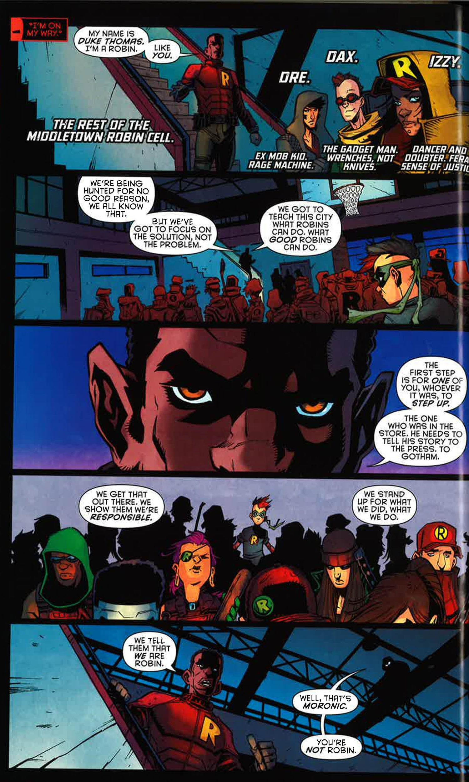 In stories from ROBIN WAR #1-2, GRAYSON #15, DETECTIVE COMICS #47, WE ARE ROBIN #7, ROBIN: SON OF BATMAN #7, GOTHAM ACADEMY #13, RED HOOD/ARSENAL #7 and TEEN TITANS #15, it's Robins vs. cops! Robins vs. Robins! Robins vs. Batman! Robins vs. the Court of Owls?! And the rise of The Jokers! Plus, Damian saves Gotham City-again!