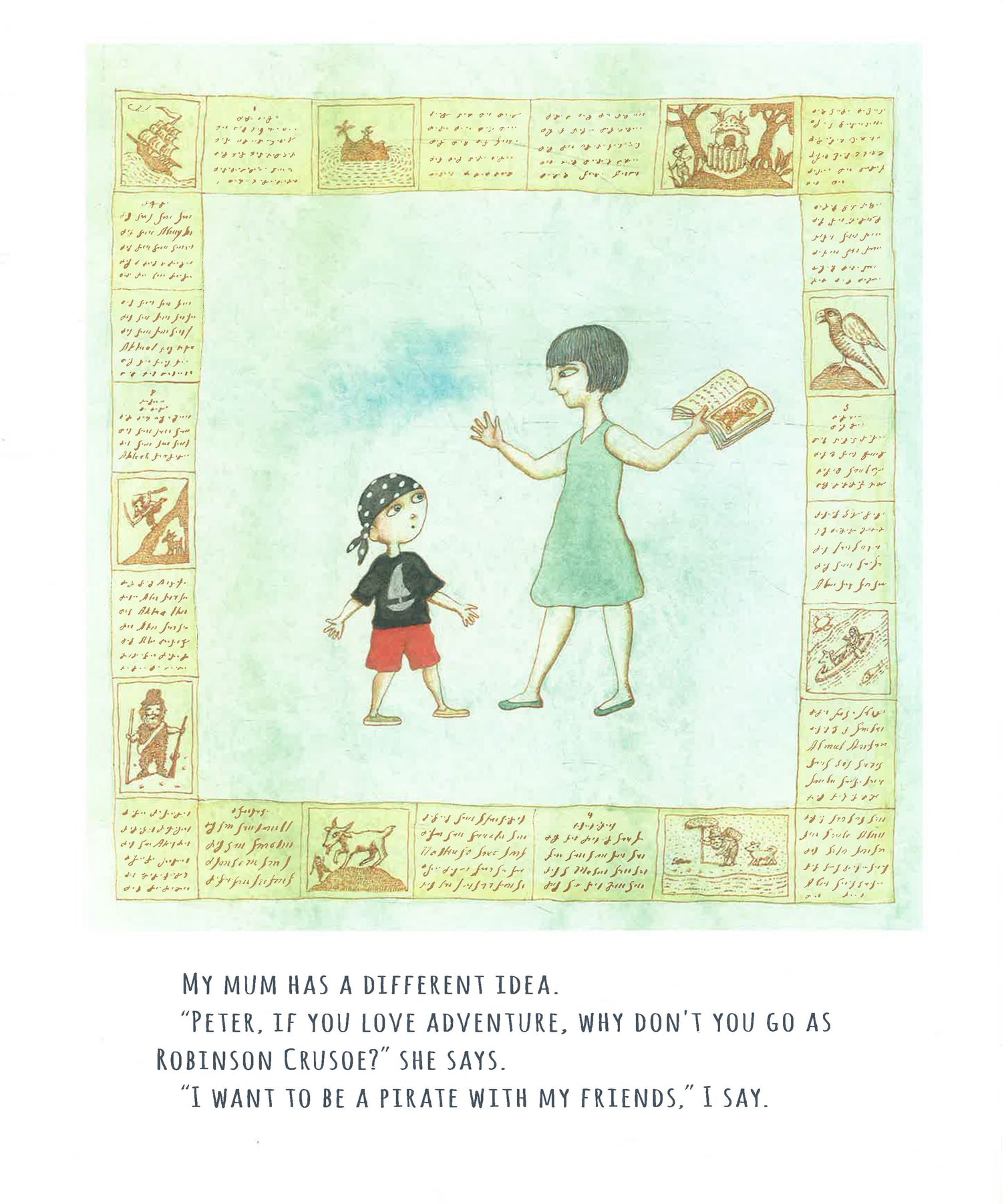 Peter Sís blends a true story from his childhood with the fictional adventure of Robinson Crusoe to create a magical picture book filled with heart and imagination that readers will want to return to again and again.