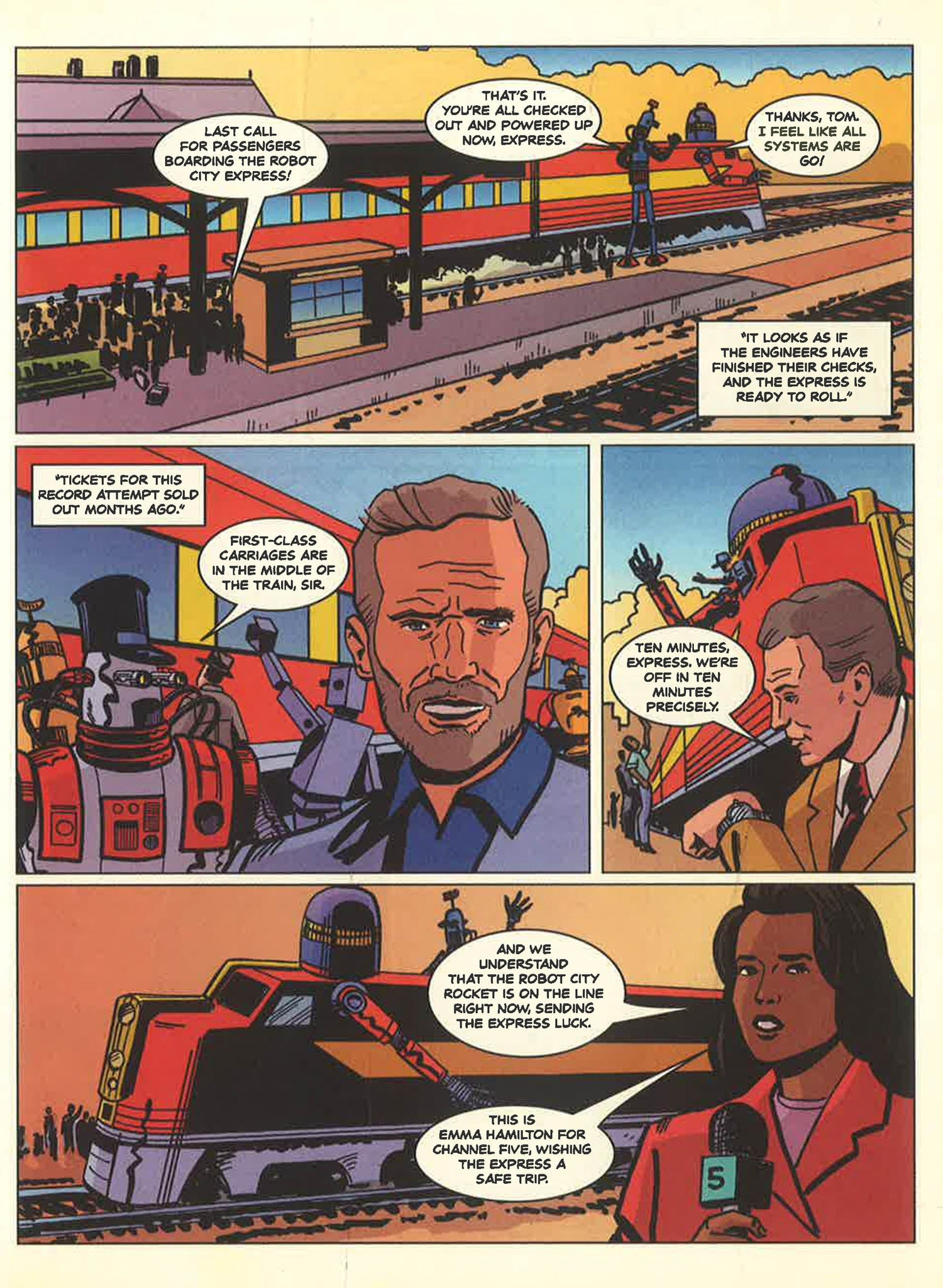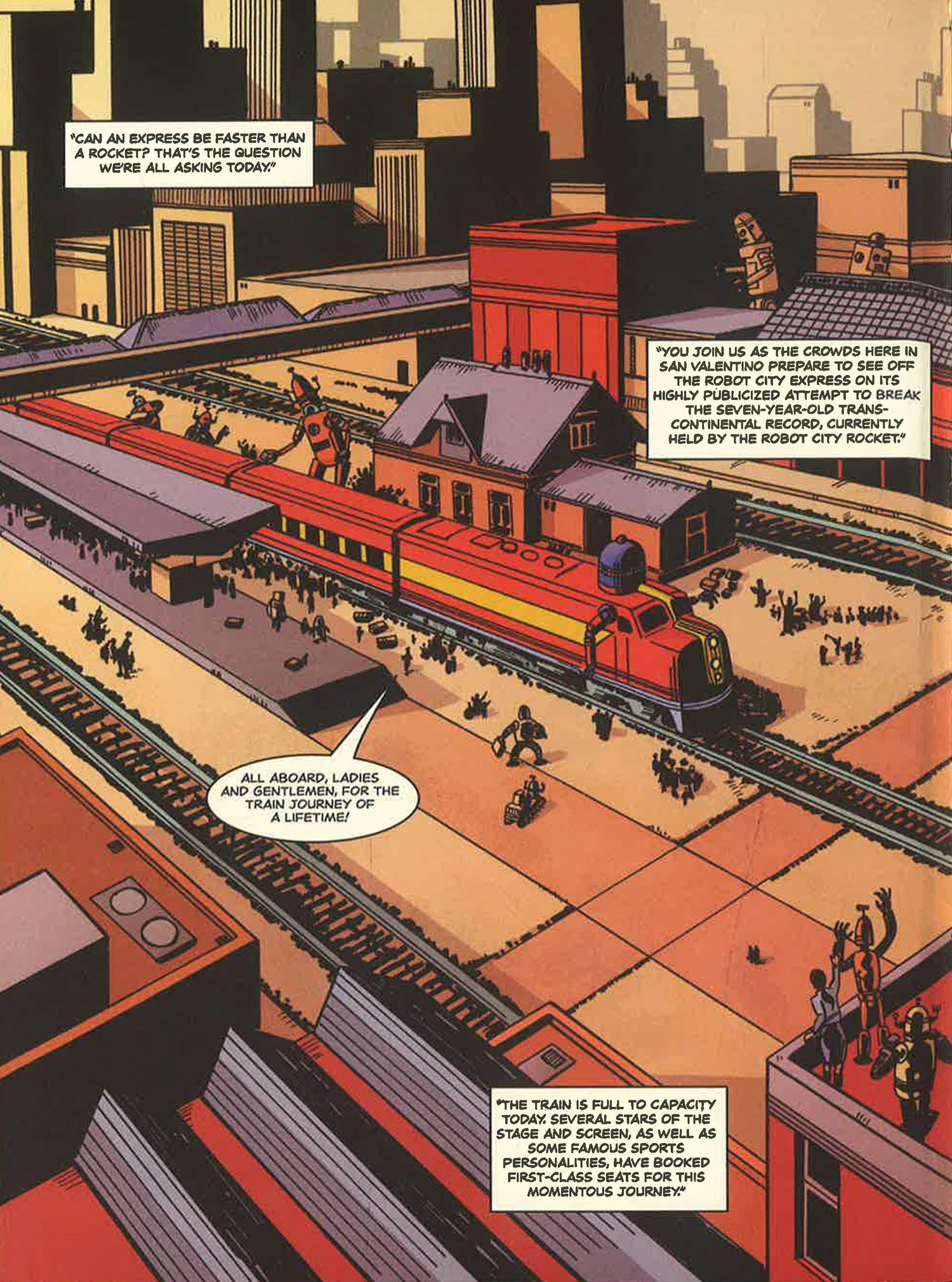 Praise for Robot City Adventures "This series promises plenty of rock'em sock." -- Booklist "Full of retro-comic-book-style action and classic movie-serial banter." -- Kirkus Reviews As the world-famous Robot City Express train sets off to break the cross-country speed record amid cheers and celebrations, little do the passengers know that murder is on the menu! Can conductor Harrison glean the truth from a host of larger-than-life characters and find the crook before the train reaches its final destination? This playful pastiche of the detective-fiction genre is just the ticket for reluctant readers.