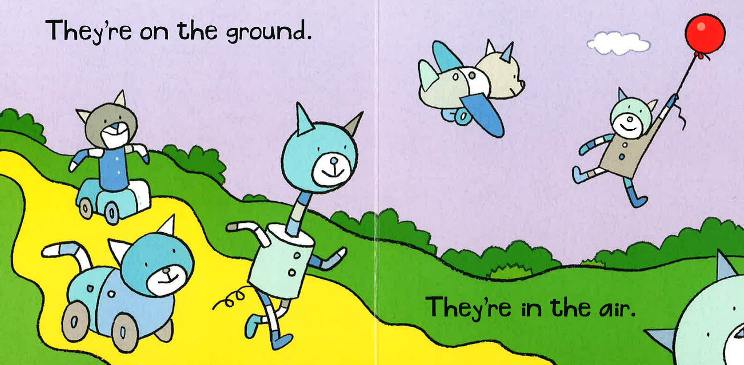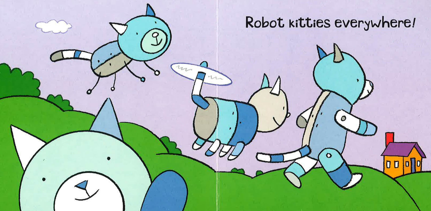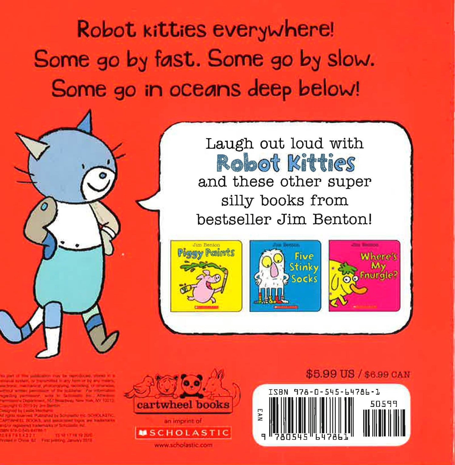 Jim Benton brings on the humor in a brand-new line of board books! Follow mechanical cats up, down, and all around in Robot Kitties! Robot kitties everywhere! They're on the ground. They're in the air. They're flying low. They're flying high, some far away, and some nearby. Jim Benton, the international bestselling author and illustrator of Dear Dumb Diary, presents a clever, rollicking new board book program that will leave toddlers wide-eyed and laughing. Fans of Sandra Boynton will rejoice in this fresh line of funny stories!