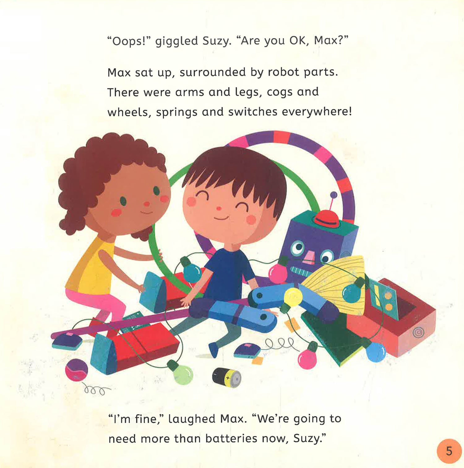 Max and Suzy discover an old robot and set out to try and bring it back to life. Can they use their technological know-how to put it back together again? Help them work out how to fix sections together, insert batteries, and make the robot break out some dance moves in this fun, interactive engineering story.