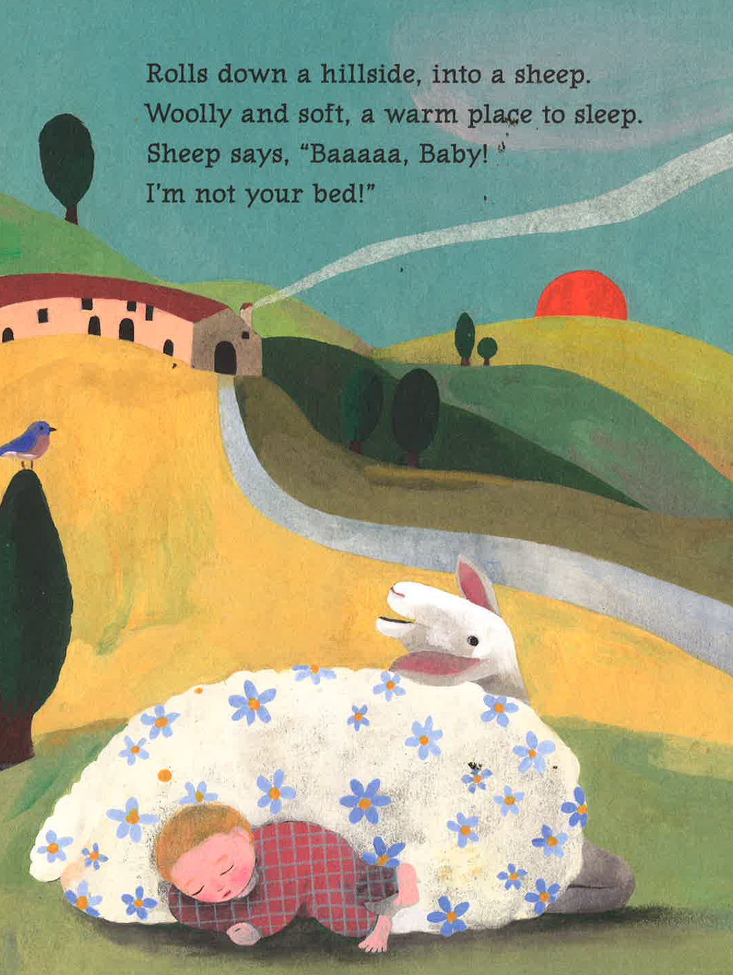 Turning a beloved lullaby on its head, this wonderful read-aloud pairs playful text and enchanting paintings to create a rollicking escapade with a clever premise and a cozy conclusion. Rock-a-bye, Baby, in the treetop. How did you ever get so high up?" That's a good question--and this delightful book weaves a gentle fantasy around the baby who finds himself in that very predicament! A marvelous adventure ensues, taking Baby from the tree branches to a farm full of animals to a ride down the river, and finally on a flight through the night sky into the safety of Mama's arms.