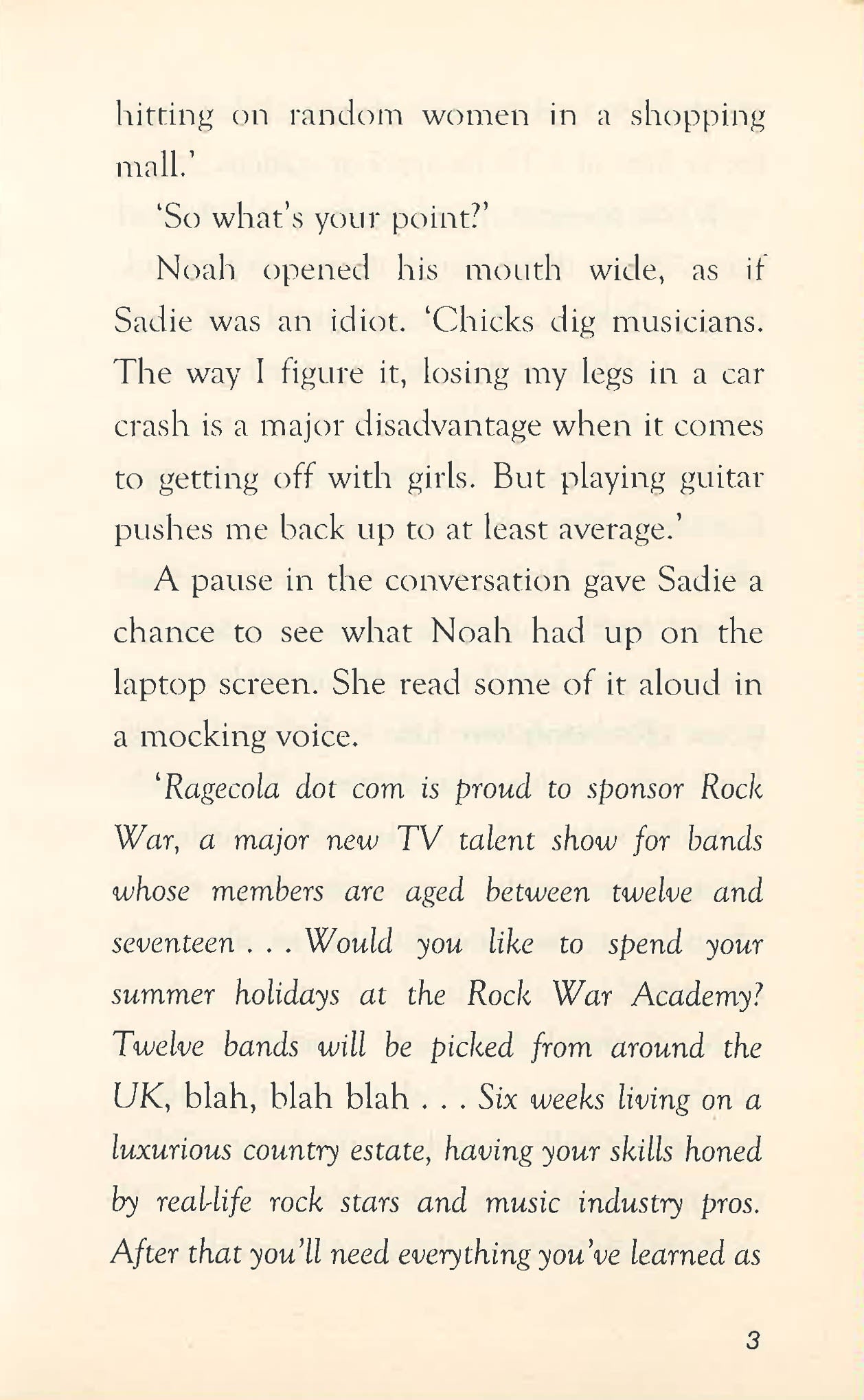 Two kids, one band, one crucial audition. Noah's a natural on the guitar, and he'd give anything to get through the Rock War audition. But when he betrays his best friend to join another band, he knows he's crossed the line. Will he risk their friendship for the sake of musical stardom? Introducing new characters, a never-before-seen band, and a behind-the-scenes look at the Rock War auditions, in a story written especially for World Book Day.