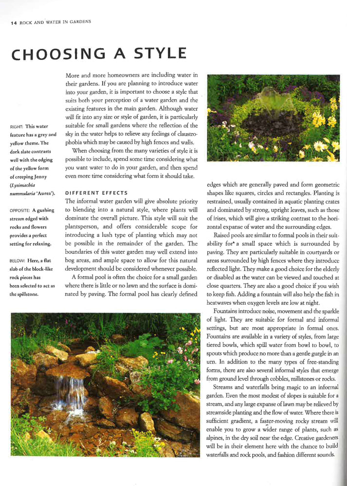 How to create and plant beautiful rock pools, ponds, gravel gardens, rockeries and bog gardens.: everything you need to know to design, construct and plant up a rock or water garden with directories of suitable plants and how to grow them. This book offers everything you need to know to design, construct and plant up a rock or water garden with directories of suitable plants and how to grow them. It includes inspirational plans of full-scale water and rock gardens, such as a slate rock pool, a rock stream, a cobble fountain, a raised pool and a wildlife pond. It features over 600 photographs including stunning examples of gardens, step-by-step sequences and plant portraits. It offers practical guidance on construction materials and techniques, an easy-to-use directory of water and rock plants, care and maintenance, and a guide to buying and introducing fish. Water is a welcome element in any garden, having the power to both soothe and excite. Combined with rock, it brings a whole new dimension to garden design. This book explains how to create beautiful rock pools, ponds, gravel gardens, wildlife pools and bog gardens, and shows how to use bridges, decking, stepping stones, islands and lighting. A plant directory provides information on waterlilies, deep-water aquatics, oxygenating and free-floating plants, as well as trees, shrubs, ornamental grasses, ferns and alpines. Whether your dream is a simple rock-edged pool or a cobble fountain, this book is perfect for both beginners and ambitious gardeners.