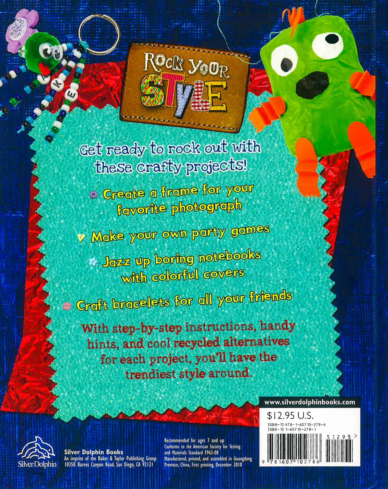 Create a frame for your favorite photograph, make your own party games, jazz up boring notebooks with colorful covers, and more with Rock Your Style, a fun craft project book that helps you create the trendiest styles around! Rock Your Style in your bedroom, with your school stuff, your wardrobe, and at your party with great ideas like a customized corkboard, backpack zipper pull, friendship bracelets, monster piata, and more! With step-by-step instructions and handy hints, this rockin' book also has great 'recycled' alternatives and ideas for supplies you can find around the house.