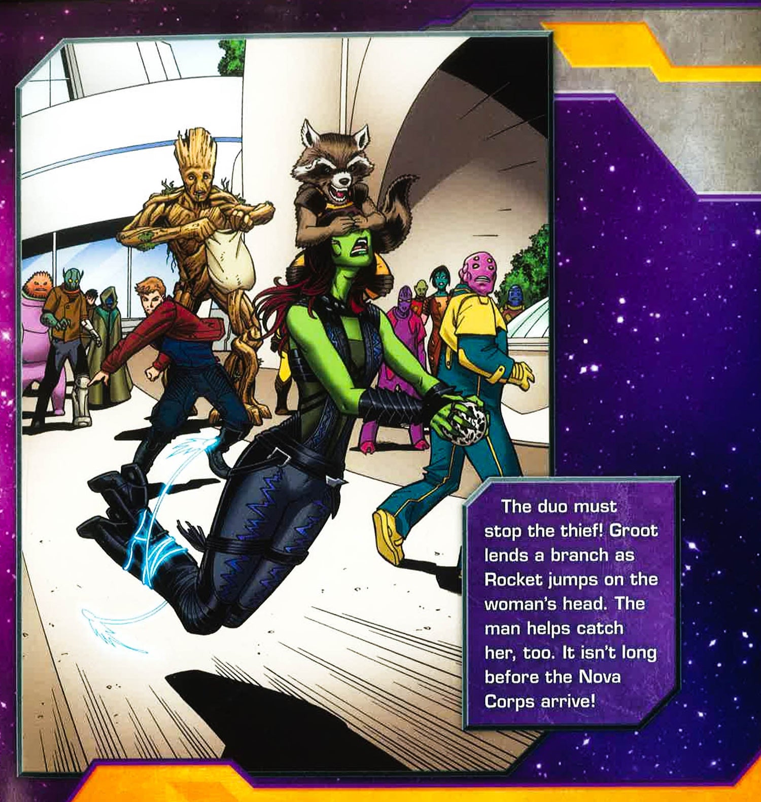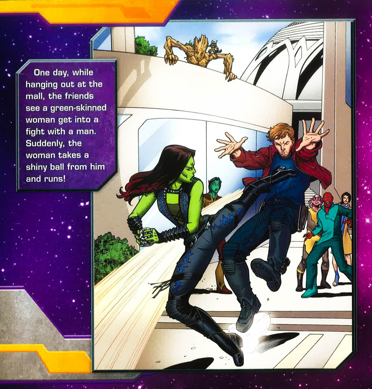 An action-packed, epic space adventure, Marvel's Guardians of the Galaxy tells the story of a group of cosmic misfits--Star-Lord, Gamora, Drax the Destroyer, Rocket Raccoon, and Groot--who band together to protect a mysterious orb against Ronan, a powerful villain with ambitions that threaten the entire universe.