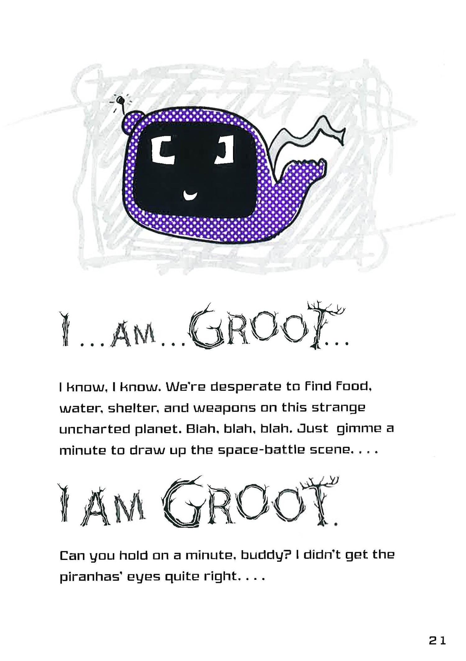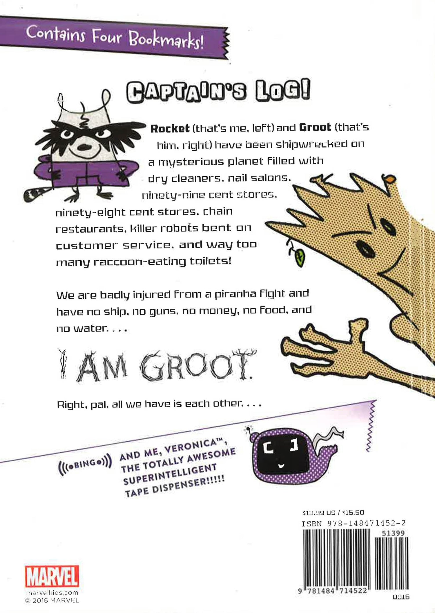 After battling deadly space piranhas in Sector 7 of the cosmos, Rocket and Groot crash-land on a planet made entirely of strip malls!There are dry cleaners, nail salons, 99 cent stores, 98 cent stores, chain restaurants,and maniacal robots bent on customer service. Sounds like paradise, right? Wrong. It doesn't take long for Rocket to discover that the place is infested with raccoon-eating toilets! That's right. KILLER toilets! Badly injured from the piranha fight, the totally-butt-kicking-duo have no ship, no guns, no money, no food, no water . . . BUT . . they have each other. Oh, and Veronica,the totally awesome super-intelligent tape dispenser!! (She told us to say that).Told through the eyes of Rocket, STRANDED ON PLANET STRIPMALL features simple black-and-white drawings throughout, as Rocket uses a space stylus to express his adventures, visually, while Veronica, their companion, lays out the adventure in text! Granted, the drawings are done by a space Raccoon with a bad attitude, but what would happen if he gave Groot a shot to draw an adventure they had been on? What would we get? We'll find out in the final chapter!
