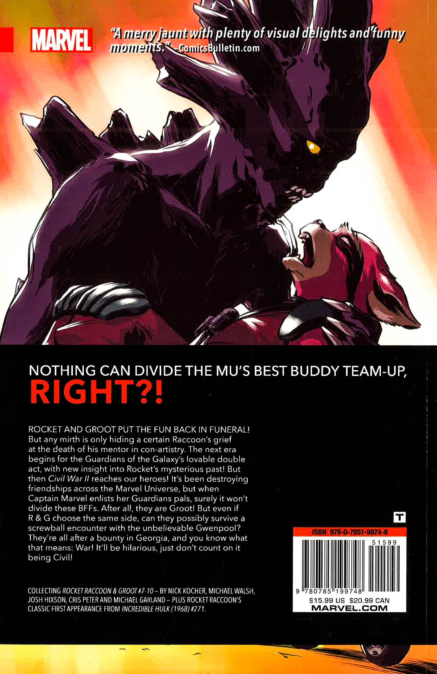 ROCKET RACCOON AND GROOT continue their galactic gallivanting in this second collection! A murderer's row of hilarious writers and artists put Marvel's two favorite space cases through a cosmic crash course in comedic cacophony. No gun is too big, no Groot is too Groot, and no planet is safe! COLLECTING: ROCKET RACCOON & GROOT 7-10, TBD *This book may have remainder mark.