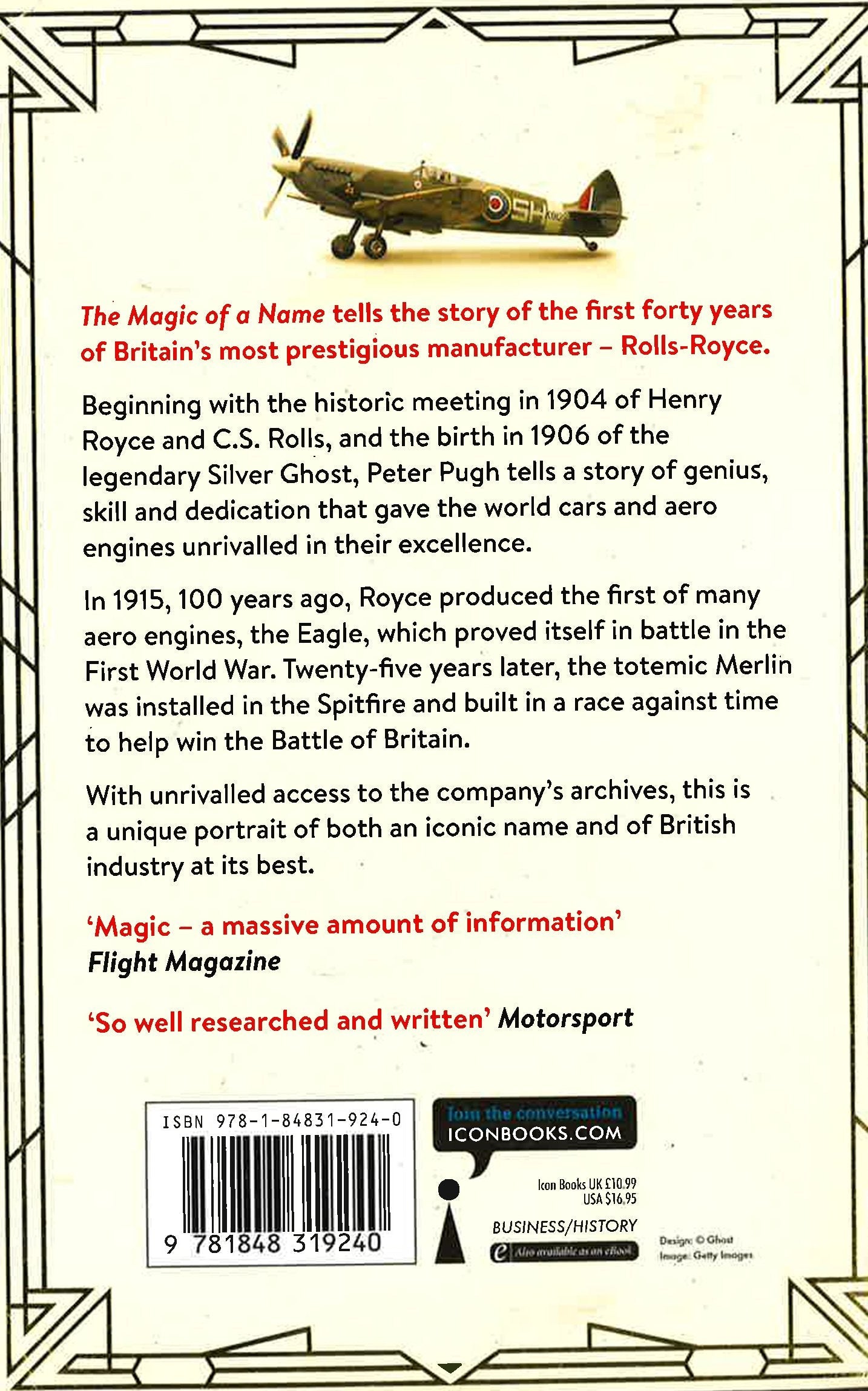 The Magic of a Name tells the story of the first forty years of Britain's most prestigious manufacturer - Rolls-Royce. Beginning with the historic meeting in 1904 of Henry Royce and C.S. Rolls, and the birth in 1906 of the legendary Silver Ghost, Peter Pugh tells a story of genius, skill and dedication that gave the world cars and aeroengines unrivalled in their excellence. In 1915, 100 years ago, Royce produced the first of many aero engines, the Eagle, which proved itself in battle in the First World War. Twenty-five years later, the totemic Merlin was installed in the Spitfire and built in a race against time to help win the Battle of Britain. With unrivalled access to the company's archives, this is a unique portrait of both an iconic name and of British industry at its best.