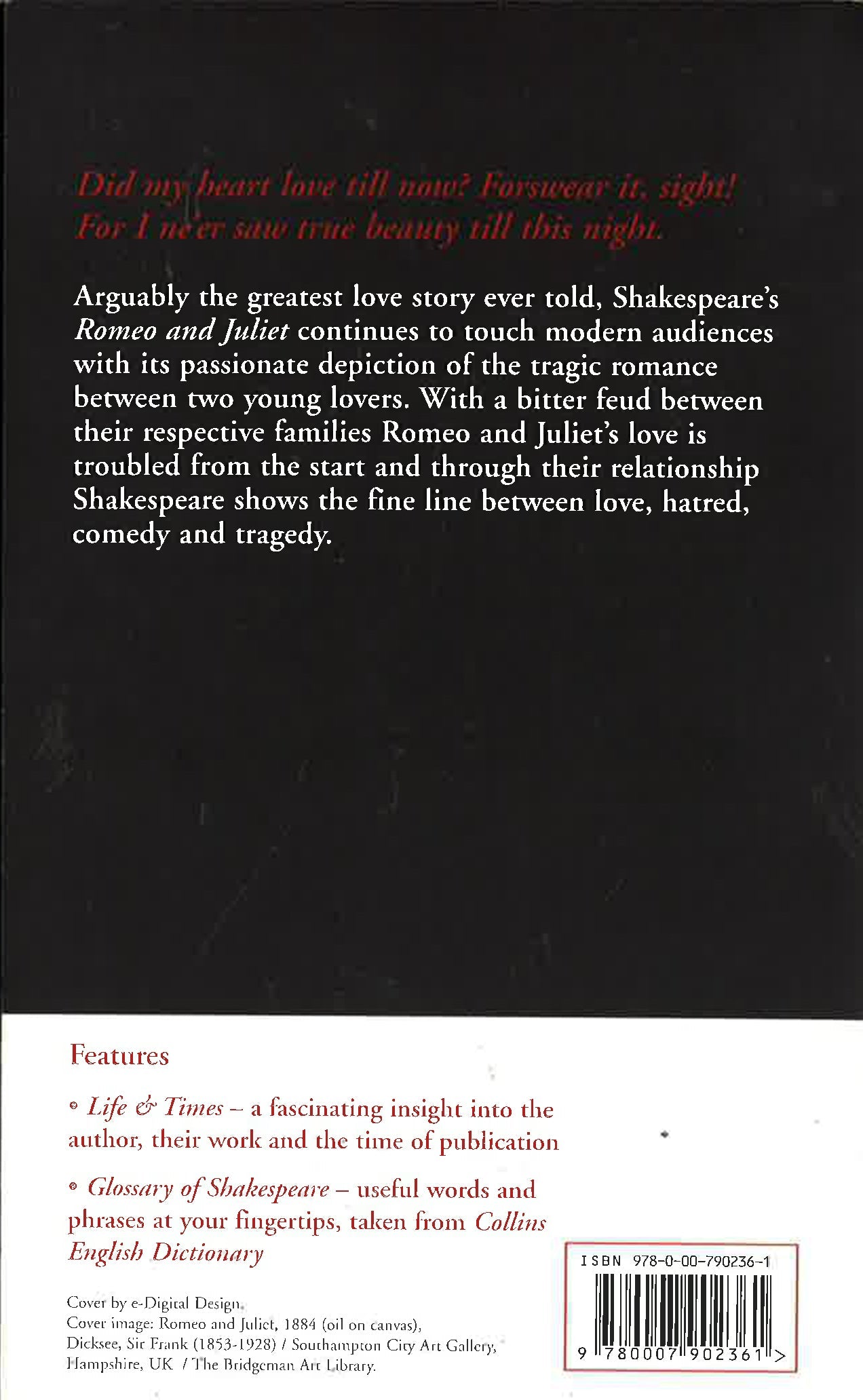 HarperCollins is proud to present its new range of best-loved, essential classics. HarperCollins is proud to present its new range of best-loved, essential classics. 'Did my heart love till now? Forswear it, sight!For I ne'er saw true beauty till this night.' Arguably the greatest love story ever told, Shakespeare's Romeo and Juliet continues to touch modern audiences with its passionate depiction of the tragic romance between two young lovers. With a bitter feud between their respective families, Romeo and Juliet's love is troubled from the start, and through their relationship, Shakespeare shows the fine line between love, hatred, comedy and tragedy.