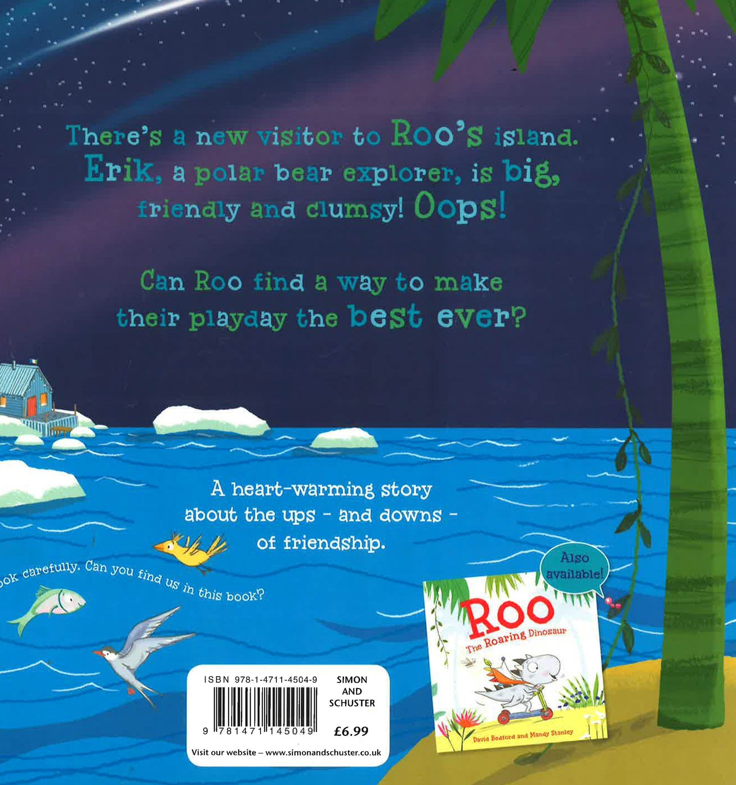 The cute noisy dinosaur is back for another adventure! When Erik, a polar bear explorer, spends a day on Roo's island, Roo makes a big, fun friend. But he soon discovers that even big, fun friends sometimes need help. A heart-warming story about the ups - and downs - of friendship.