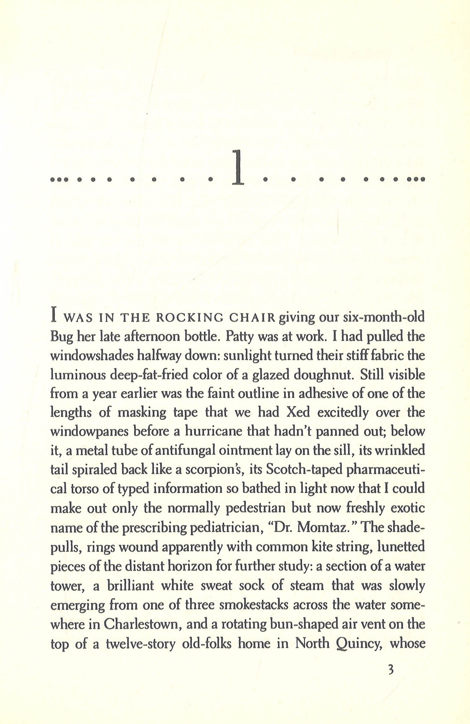 The author of the quirky masterpiece The Mezzanine turns a young father's feeding-time reverie into a dazzling catalog of the minutiae of domestic love. A delightful book, homey and comfortable as a slipper. . . . Every page provokes the shock, or at least the smile, of recognition.--Washington Post.