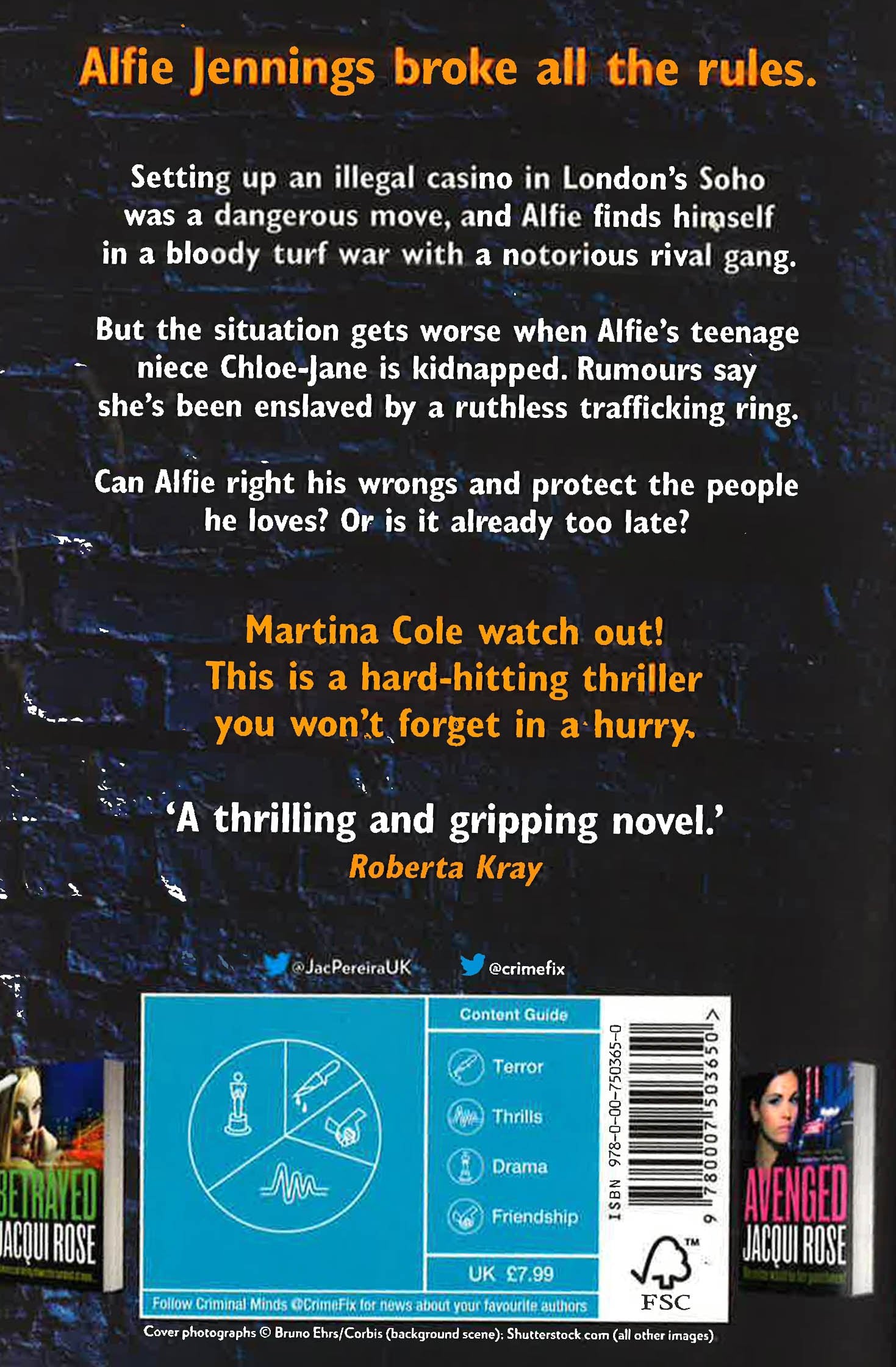 When you play with fire, you're not the only one who gets burned... Setting up an illegal casino in Soho was a dangerous move, and now Alfie Jennings' business is under threat from a rival gang. The last thing he needs is for his teenage niece Chloe-Jane to turn up on his doorstep - and all the trouble that she brings with her. When Chloe-Jane betrays Alfie's trust, she finds herself back on the streets. But when she's brutally kidnapped, Alfie soon realises the turf war with his rivals has turned personal. He will stop at nothing to protect Chloe-Jane. Because you don't mess with family. And you certainly don't mess with a Jennings... A hard-hitting thriller perfect for fans of Martina Cole and Kimberley Chambers.