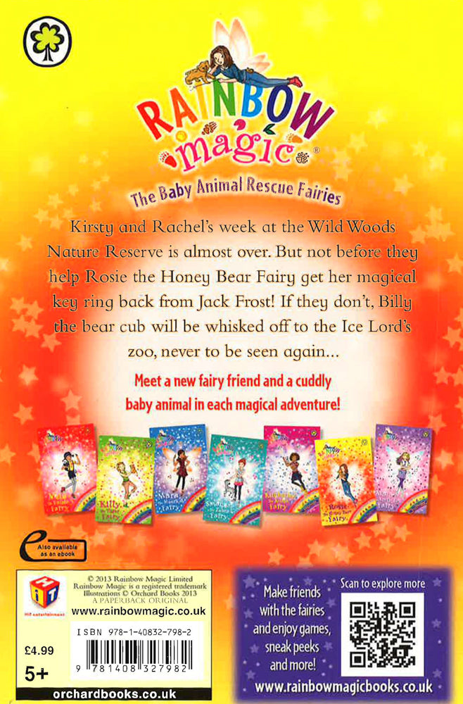 Meet adorable baby animals with Kirsty, Rachel and the amazing Animal Rescue Fairies!Kirsty Tate and Rachel Walker are having a fantastic time helping out at the Wild Woods Nature Reserve. But nasty Jack Frost has stolen the Animal Rescue Fairies' magical key rings, so he can have his own personal zoo. Rosie the Honey Bear Fairy needs Rachel and Kirsty's help! If she can't get her magical key ring back, then Billy the bear cub will be whisked off to the Ice Lord's zoo, never to be seen again...Join Rachel and Kirsty and meet a new fairy friend and gorgeous baby animal in each magical adventure!