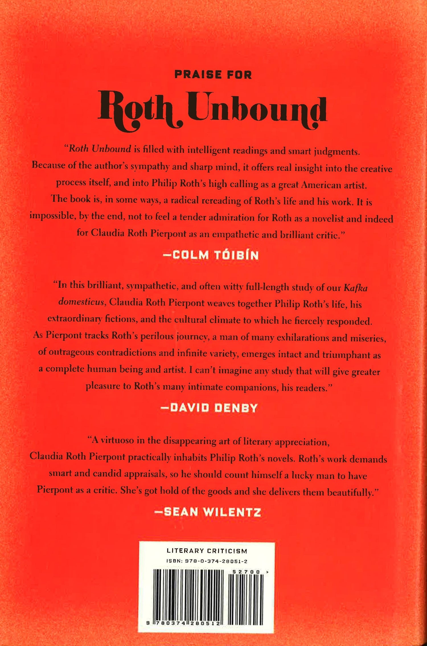 A critical evaluation of Philip Roth--the first of its kind--that takes on the man, the myth, and the workPhilip Roth is one of the most renowned writers of our time. From his debut, "Goodbye, Columbus," which won the National Book Award in 1960, and the explosion of "Portnoy's Complaint "in 1969 to his haunting reimagining of Anne Frank's story in "The Ghost Writer "ten years later and the series of masterworks starting in the mid-eighties--"The Counterlife," "Patrimony," "Operation Shylock," "Sabbath's Theater," "American Pastoral," "The Human" "Stain"--Roth has produced some of the great American literature of the modern era. And yet there has been no major critical work about him until now. Here, at last, is the story of Roth's creative life. "Roth Unbound "is not a biography--though it contains a wealth of previously undisclosed biographical details and unpublished material--but something ultimately more rewarding: the exploration of a great writer through his art. Claudia Roth Pierpont, a staff writer for "The New Yorker," has known Roth for nearly a decade. Her carefully researched and gracefully written account is filled with remarks from Roth himself, drawn from their ongoing conversations. Here are insights and anecdotes that will change the way many readers perceive this most controversial and galvanizing writer: a young and unhappily married Roth struggling to write; a wildly successful Roth, after the uproar over "Portnoy," working to help writers from Eastern Europe and to get their books known in the West; Roth responding to the early, Jewish--and the later, feminist--attacks on his work. Here are Roth's family, his inspirations, his critics, the full range of his fiction, and his friendships with such figures as Saul Bellow and John Updike. Here is Roth at work and at play. "Roth Unbound" is a major achievement--a highly readable story that helps us make sense of one of the most vital literary careers of the twentieth and twenty-first centuries.