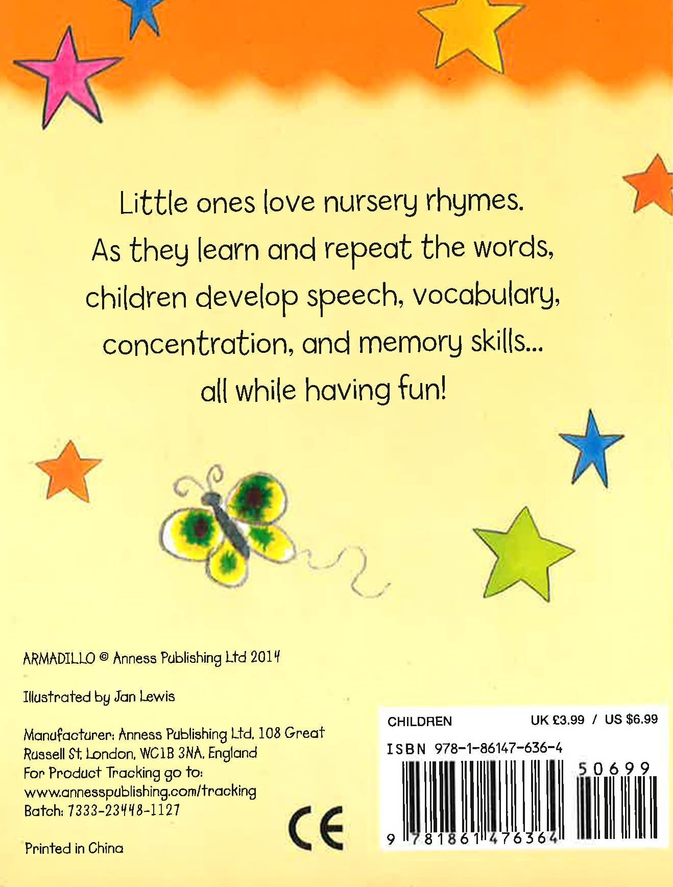 The traditional fingerplay song is presented with bright and attractive pictures by illustrator Jan Lewis in this special padded boardbook. You can see the classic verse brought to life as a little teddy bear sneaks up on and tickles his daddy...and ends up getting tickled right back! Little children love nursery rhymes, and as they learn and repeat the words, they develop speech, vocabulary, concentration and memory skills, all while having fun. It is designed for youngsters and grown-ups to enjoy together, with a wipe-clean cover and sturdy board pages - though readers must provide their own tickles! Round and round the garden, Like a teddy bear. One step...Two steps...Tickle you under there! Round and round the garden, In the wind and rain. One step...Two steps...Tickle you there again!
